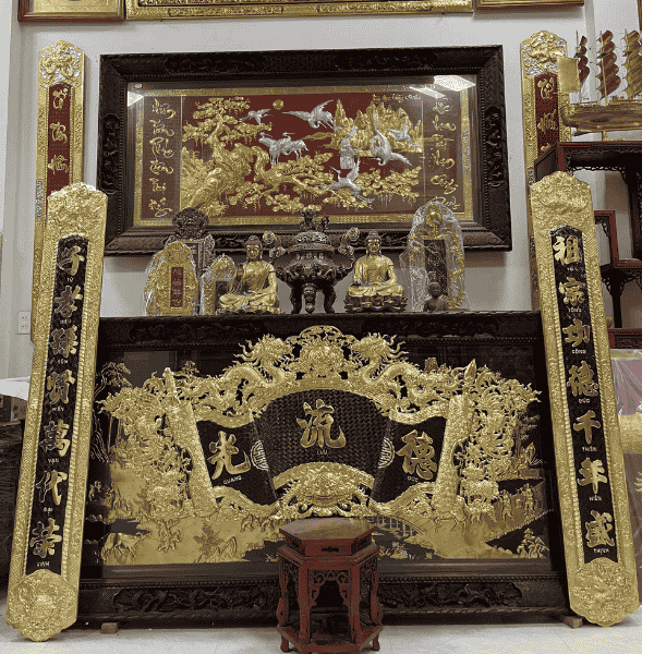 Cuốn thư câu đối bẳng đồng là vật phẩm trang trí cho gian thờ thêm phần sang trọng và linh thiêng. Nhìn vào bộ hoành phi với mẫu mã, hoa văn tỉ mỉ, tinh tế ta thấy được vẻ đẹp hoài cổ như gian thờ thời xưa của ông cha ta. Bộ cuốn thư câu đối bằng đồng thể hiện được gia phong của gia đình, dòng tộc, mang chuẩn mực, lối sống của người Việt ta.