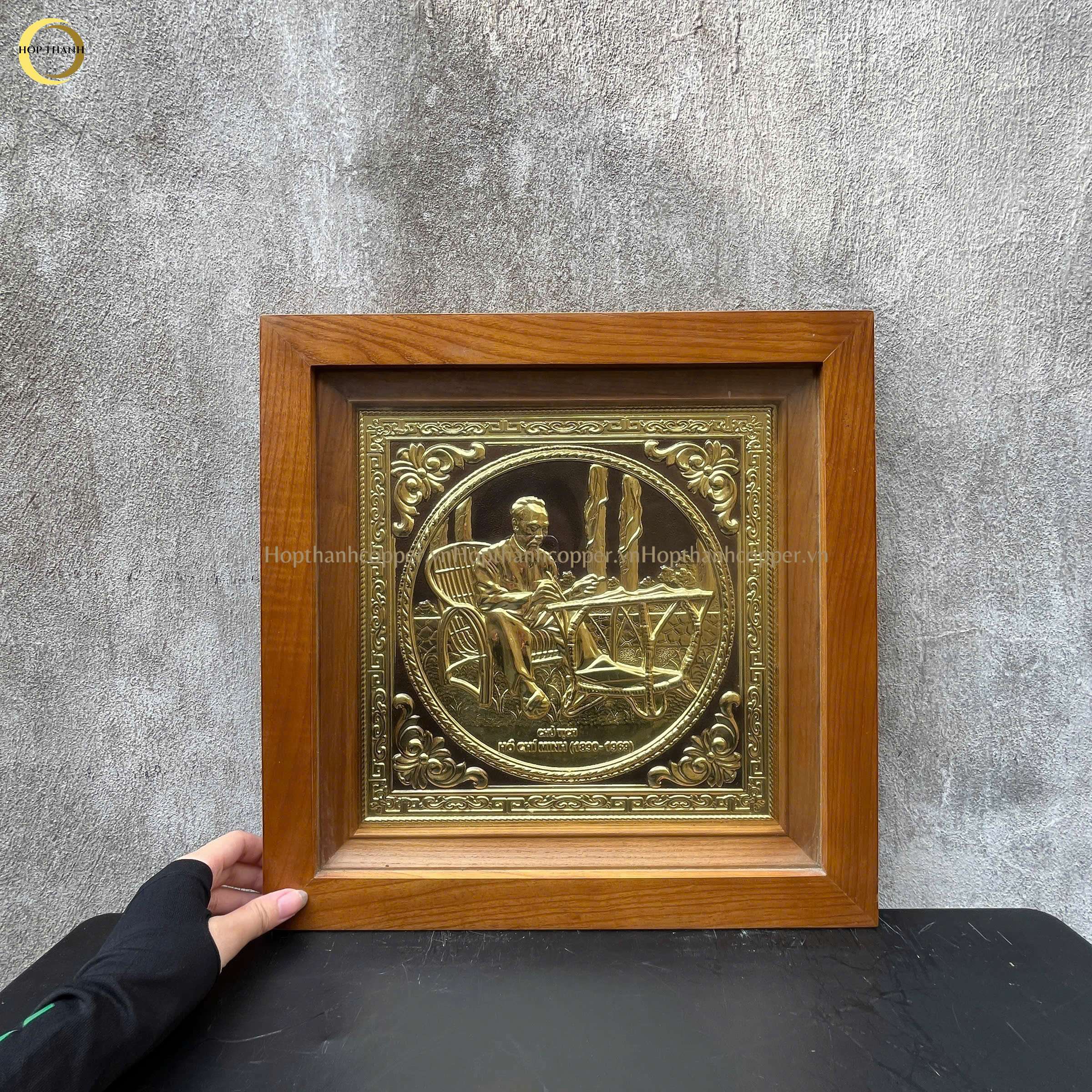 TRANH BÁC HỒ NGỒI GHẾ MÂY BẰNG ĐỒNG VÀNG - KÍCH THƯỚC 40X40CM