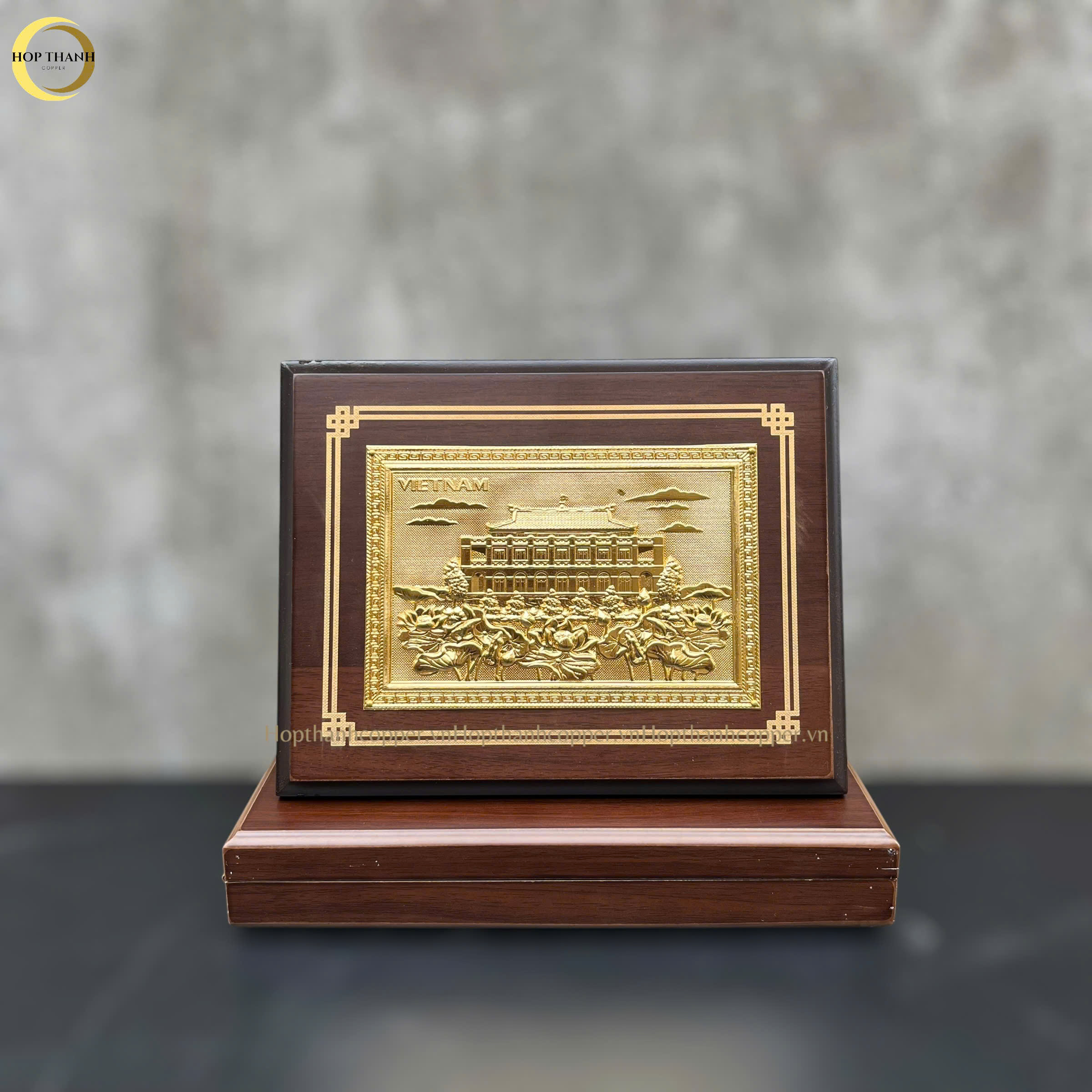 TRANH BẾN NHÀ RỒNG BẰNG ĐỒNG MẠ VÀNG 24K- TRANH QUÀ TẶNG ĐỂ BÀN (KÍCH THƯỚC 22X17CM )