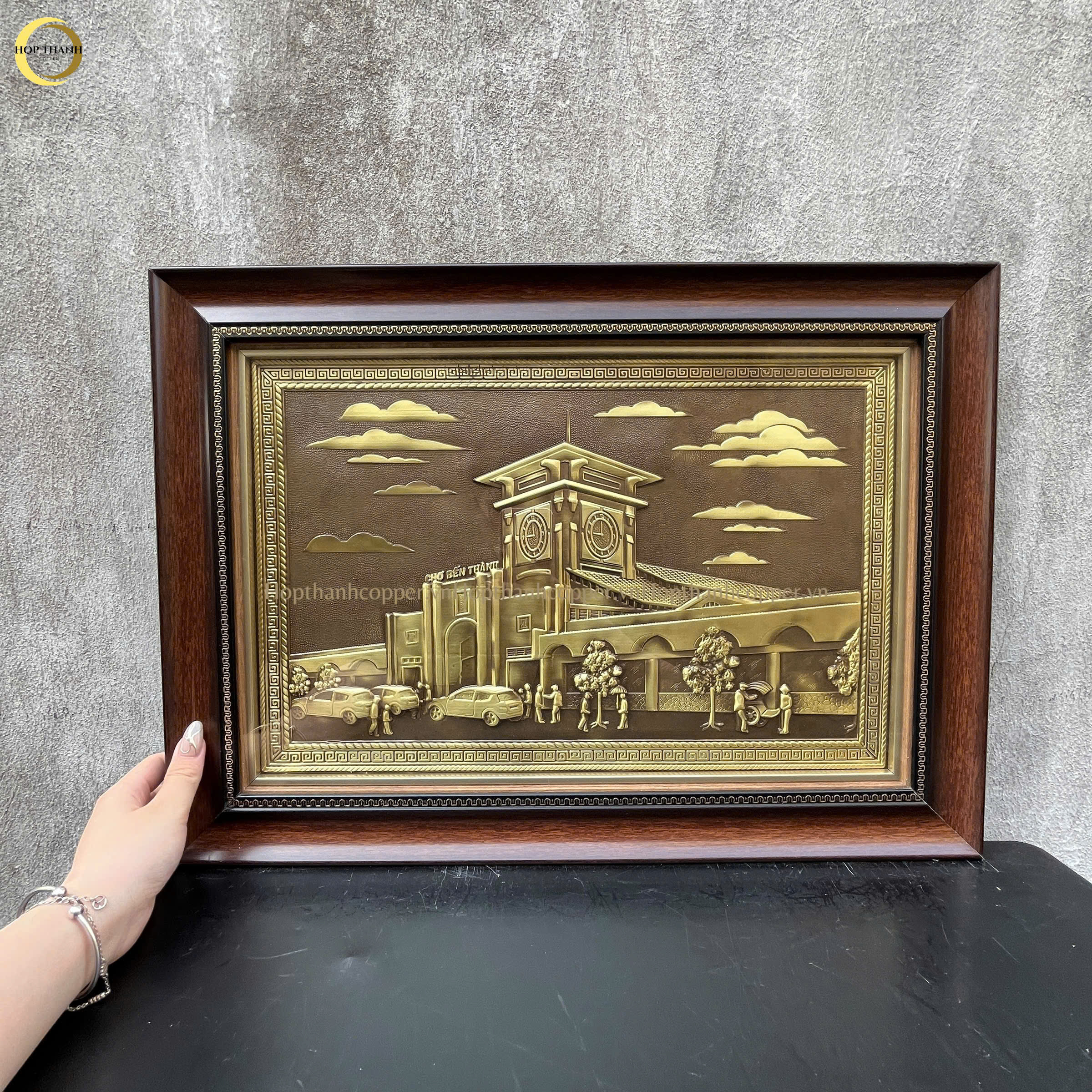 TRANH CHỢ BẾN THÀNH BẰNG ĐỒNG GIẢ CỔ - KÍCH THƯỚC 38X54CM