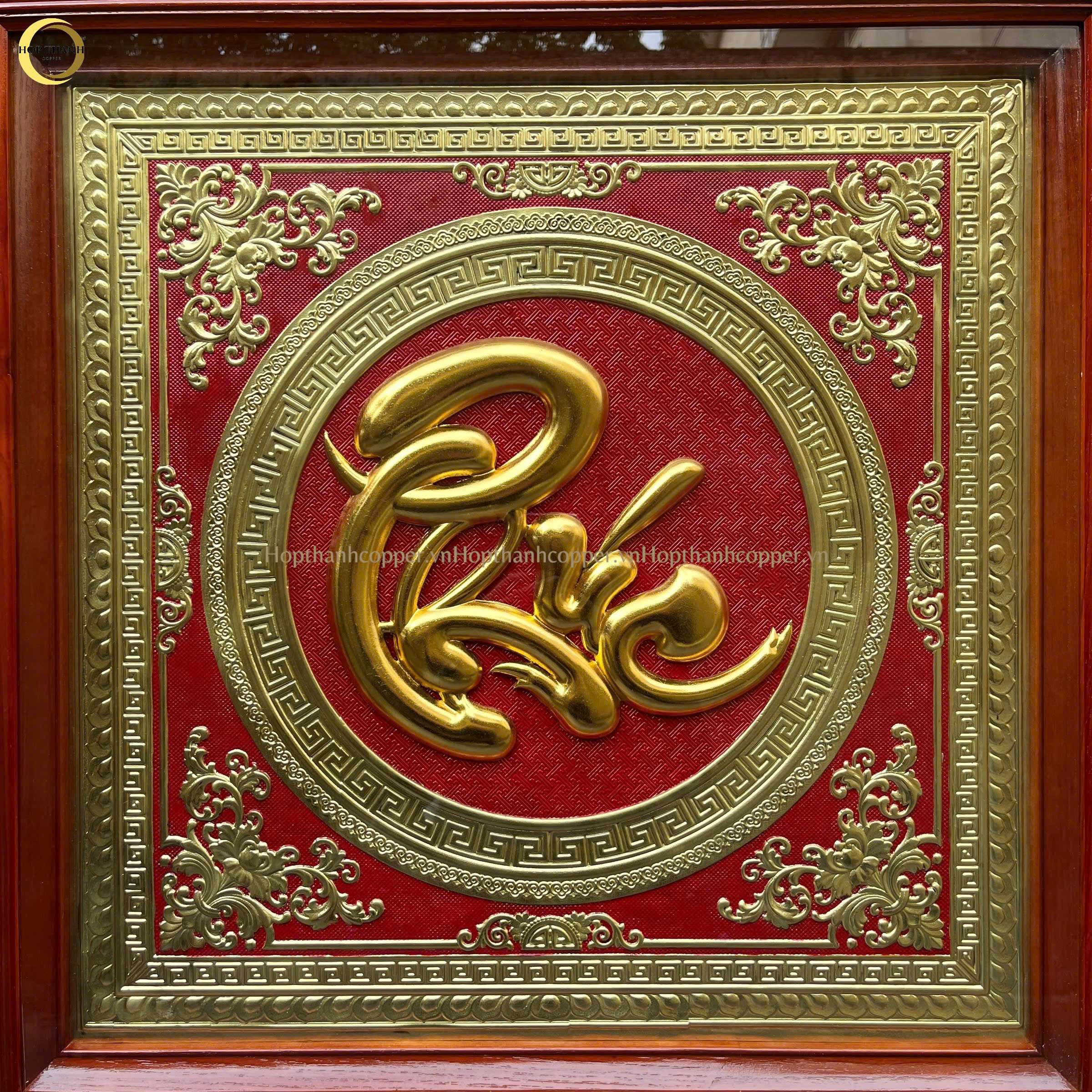 TRANH CHỮ PHÚC BẰNG ĐỒNG DÁT VÀNG NỀN ĐỒNG VÀNG - KÍCH THƯỚC 70X70CM