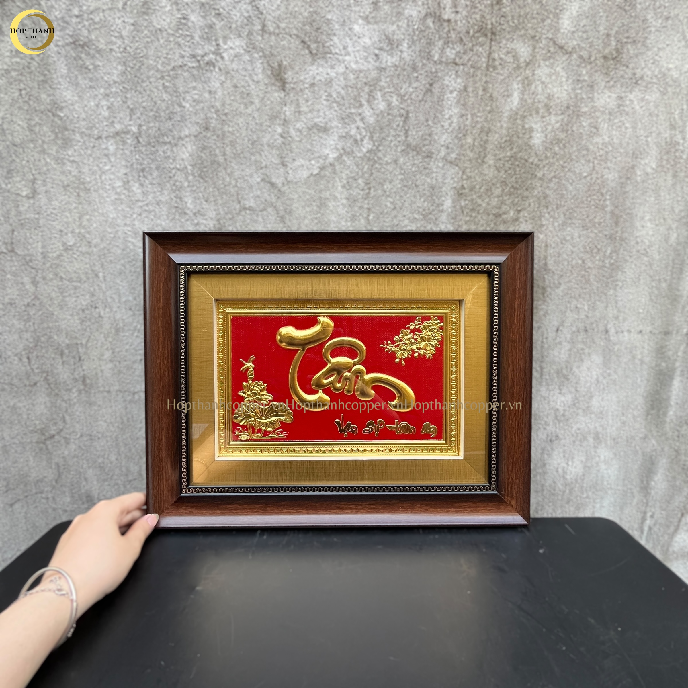 TRANH CHỮ TÂM BẰNG ĐỒNG DÁT VÀNG - KÍCH THƯỚC 42X32CM