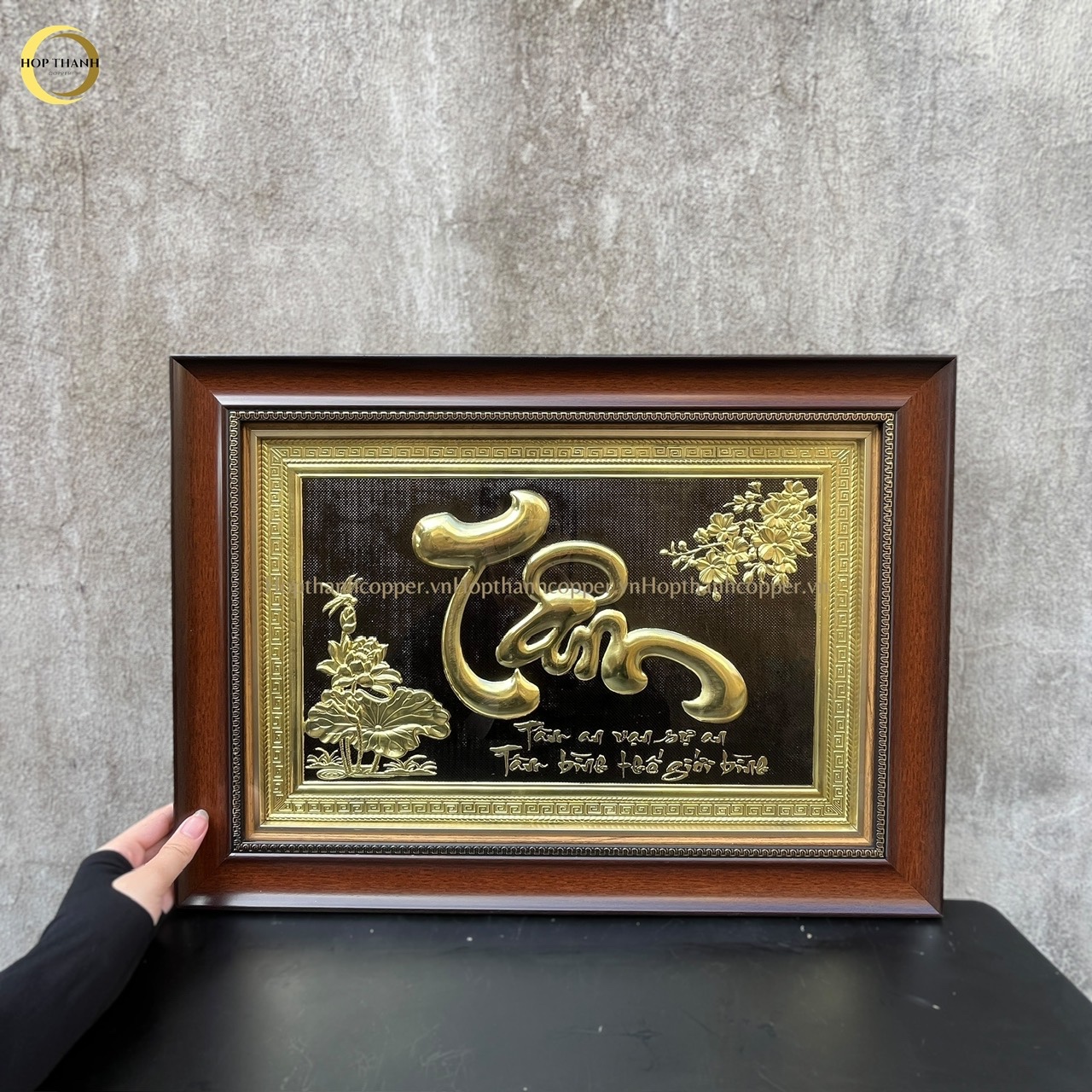 TRANH CHỮ TÂM BẰNG ĐỒNG VÀNG - KÍCH THƯỚC 54X38CM