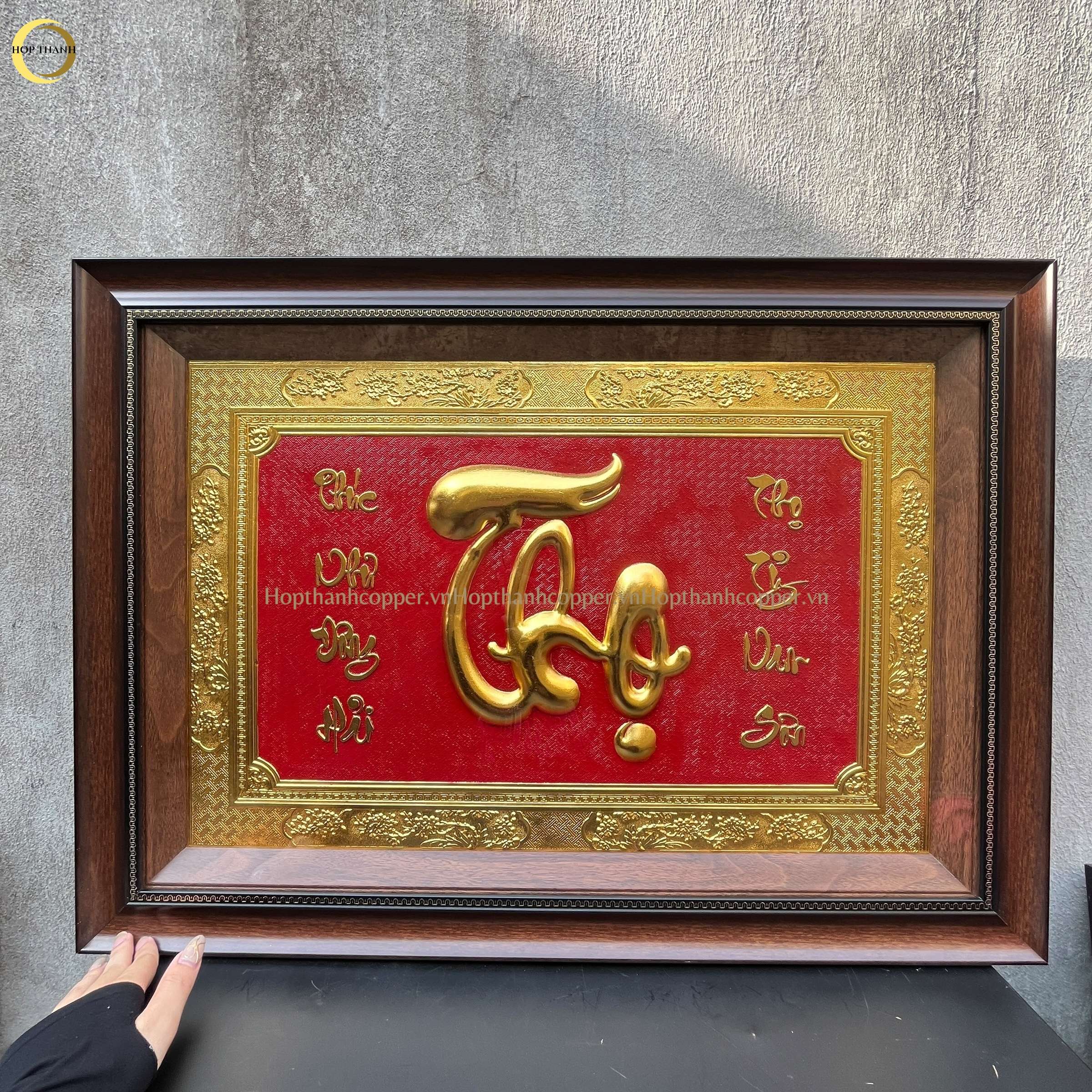 TRANH CHỮ THỌ BẰNG ĐỒNG DÁT VÀNG - KÍCH THƯỚC 70X50CM
