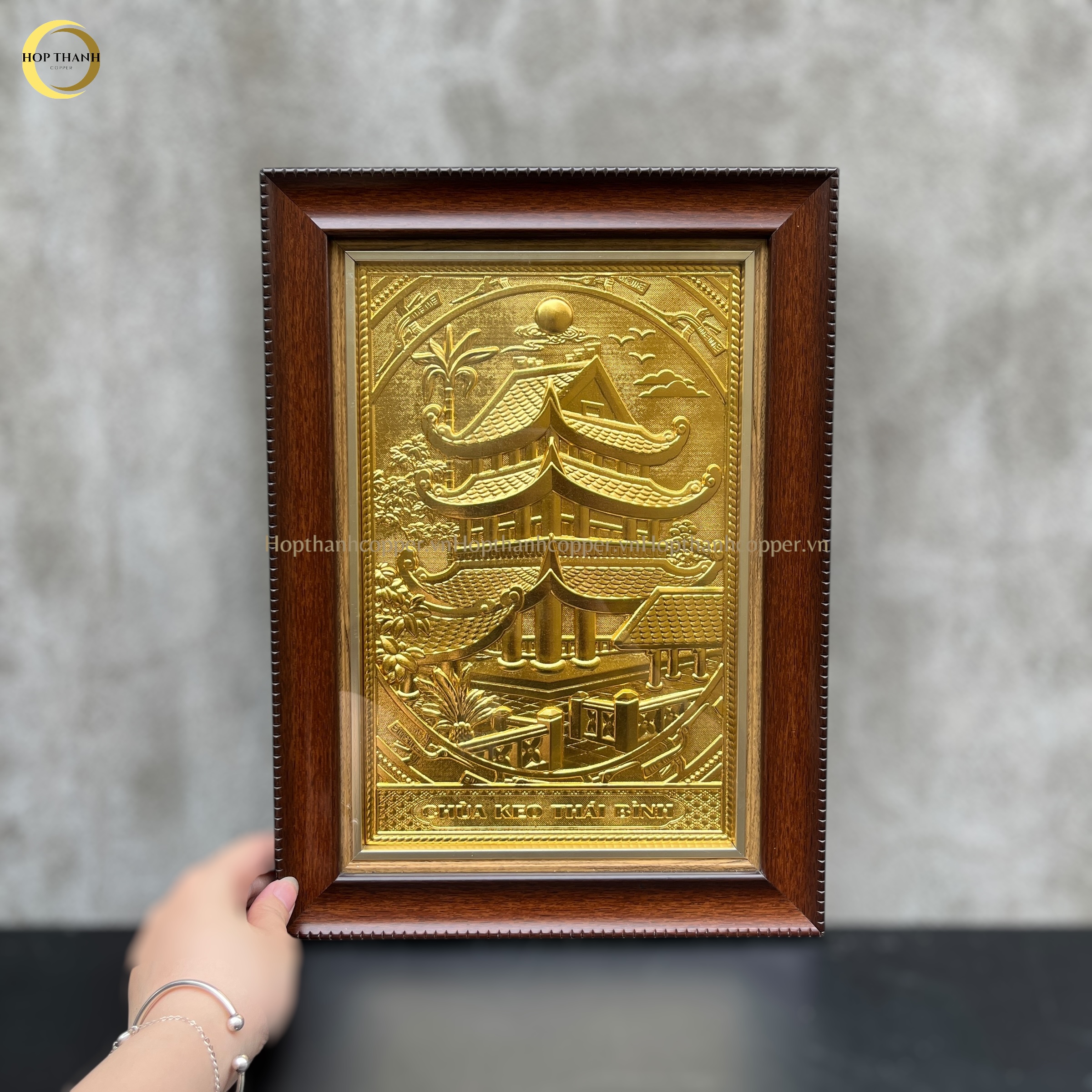 TRANH CHÙA KEO - THÁI BÌNH BẰNG ĐỒNG DÁT VÀNG - KÍCH THƯỚC 28X38CM
