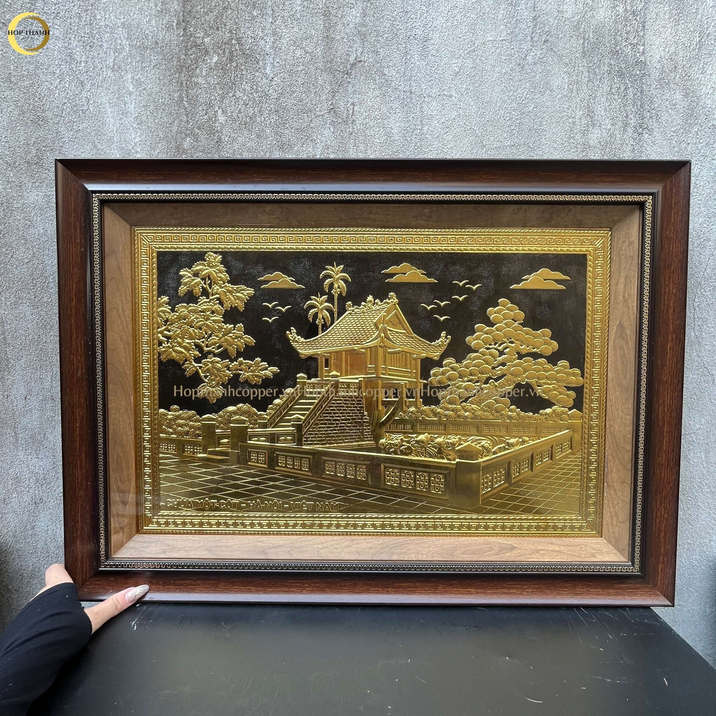 TRANH CHÙA MỘT CỘT BẰNG ĐỒNG DÁT VÀNG - KÍCH THƯỚC 70X50CM
