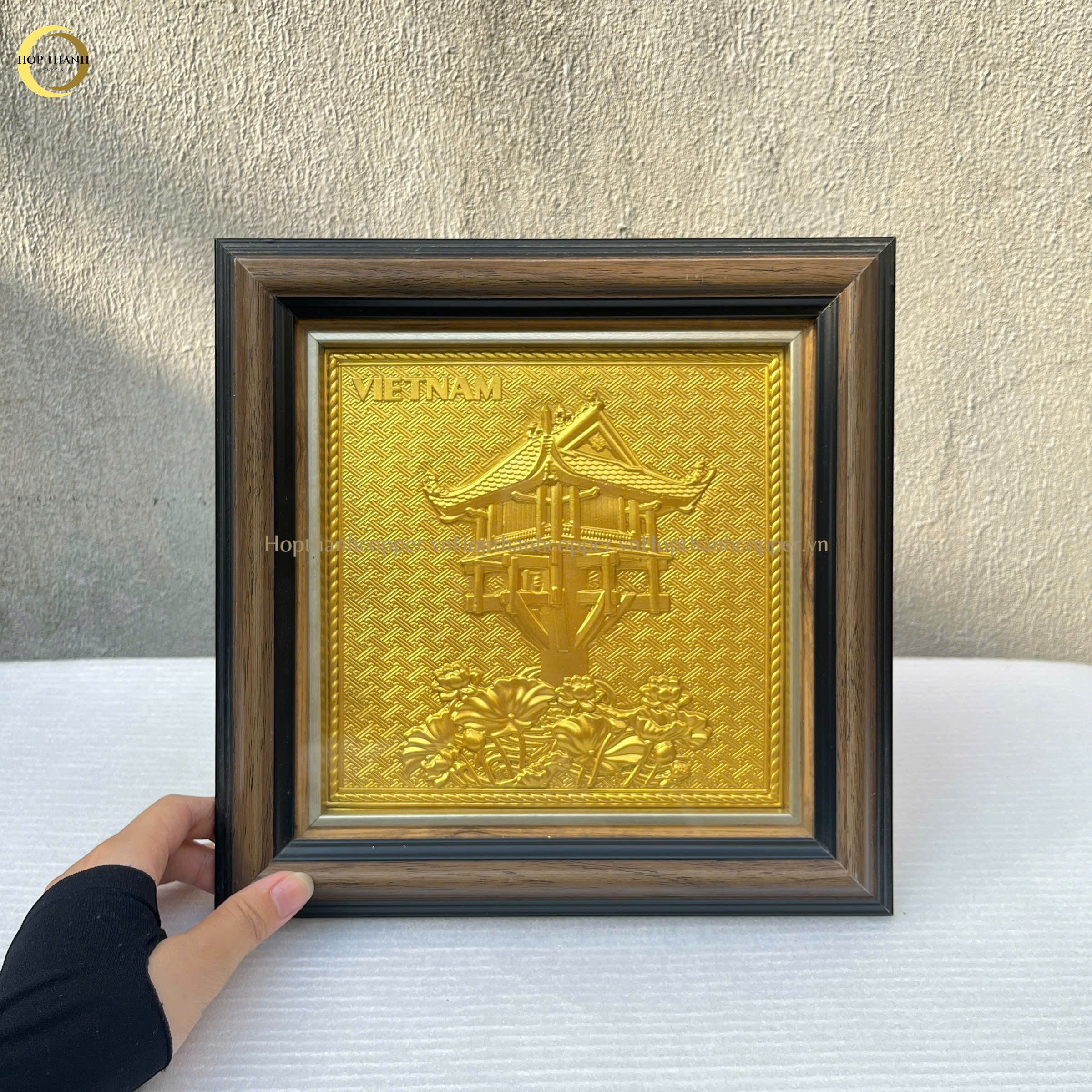 TRANH CHÙA MỘT CỘT BẰNG ĐỒNG MẠ VÀNG 24K- KÍCH THƯỚC 26X26CM