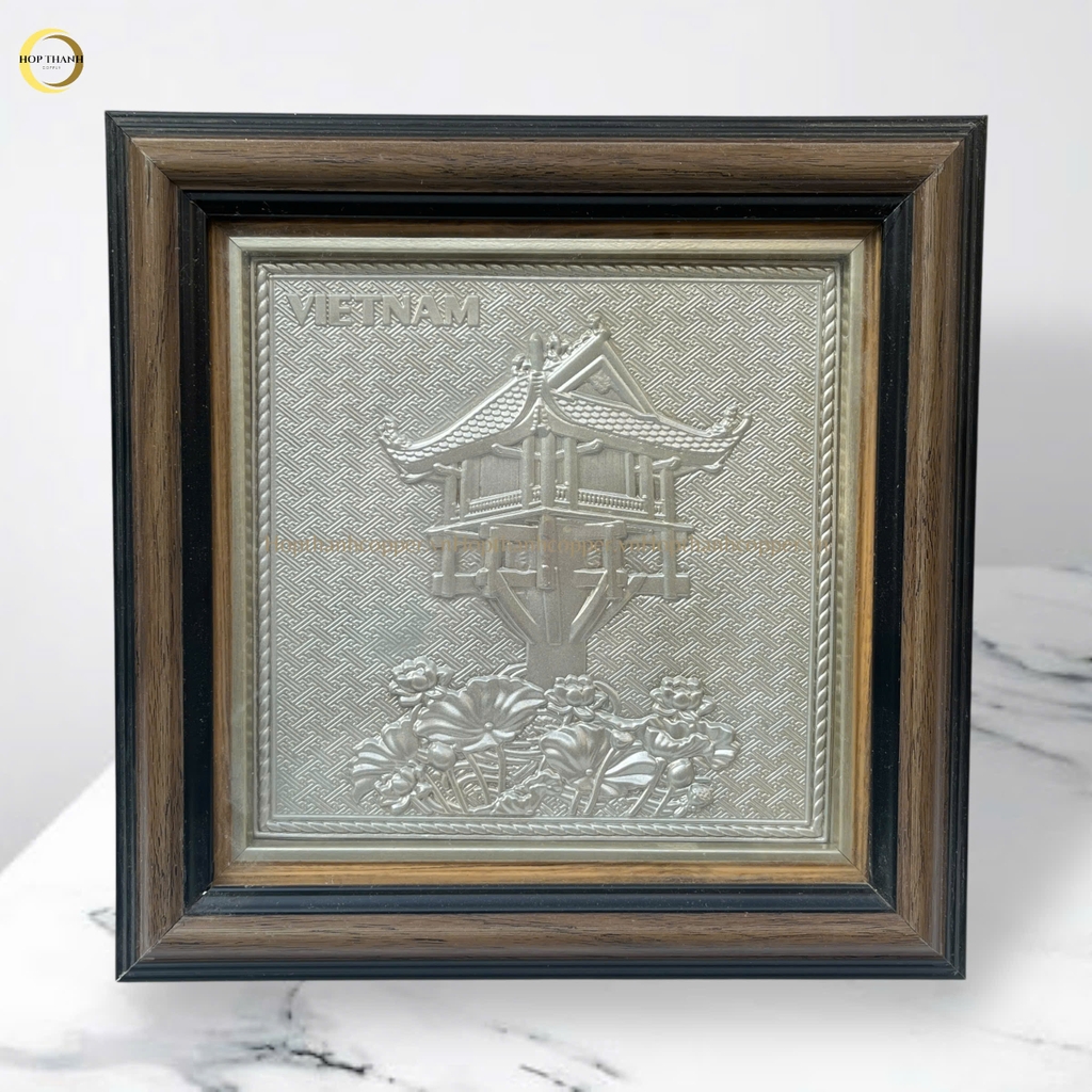 TRANH CHÙA MỘT CỘT BẰNG ĐỒNG MẠ BẠC - KÍCH THƯỚC 26X26CM