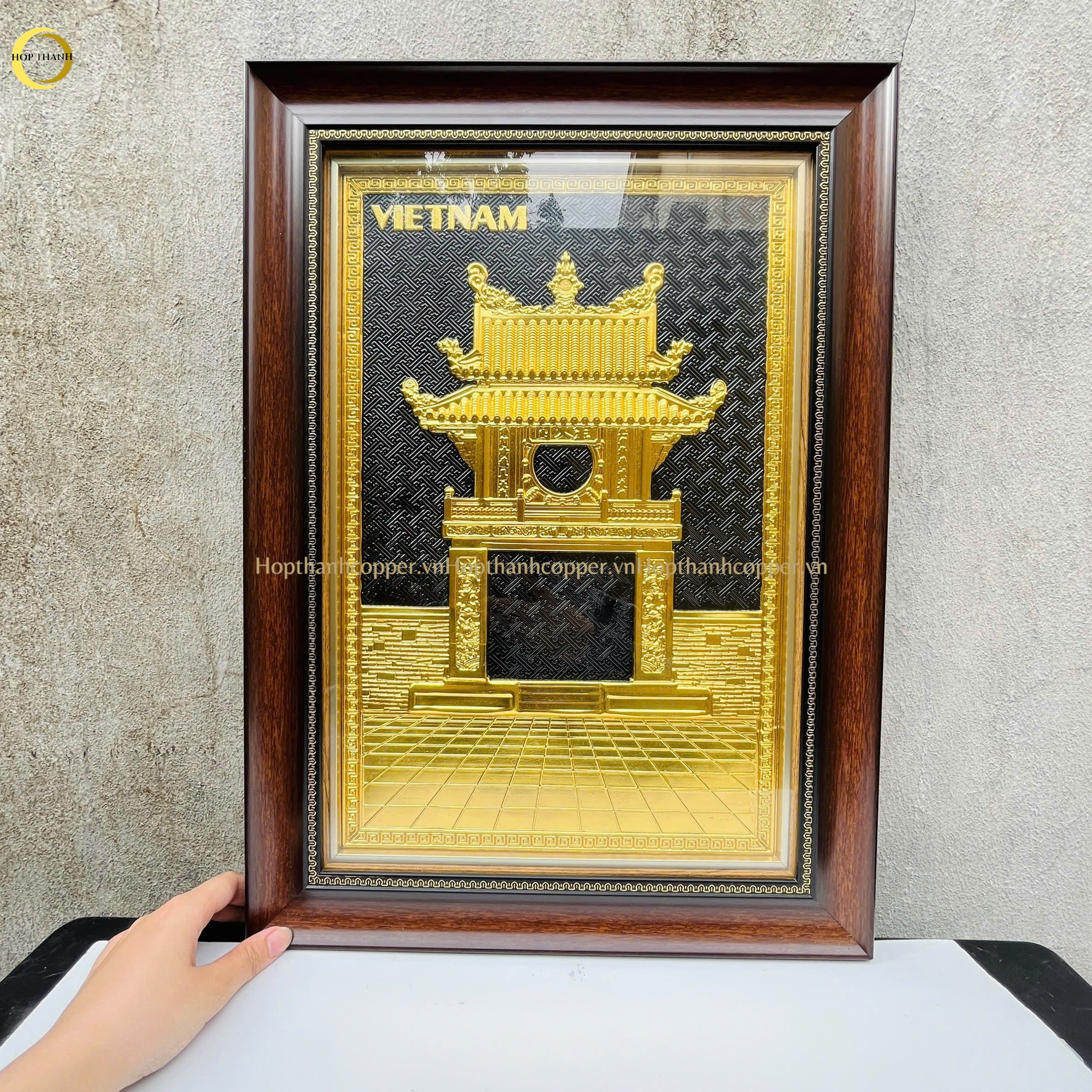 TRANH CHÙA MỘT CỘT BẰNG ĐỒNG DÁT VÀNG - KÍCH THƯỚC 38X54CM