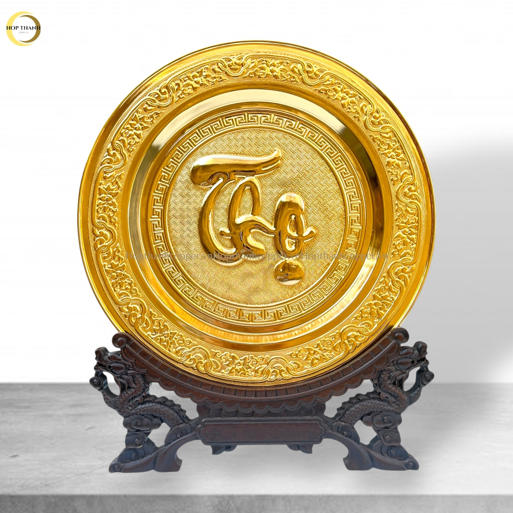 TRANH ĐĨA CHỮ THỌ THƯ PHÁP BẰNG ĐỒNG MẠ VÀNG 24K - TRANH QUÀ TẶNG ĐỂ BÀN (KÍCH THƯỚC 35CM)