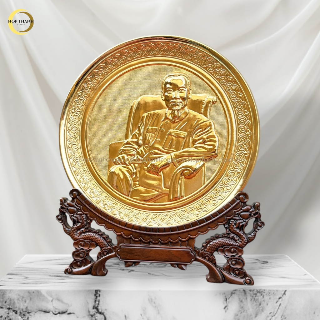 Mang trong mình vẻ đẹp trang nhã và tinh thần tôn vinh lịch sử, tranh đĩa đồng mạ vàng 24k – chân dung lãnh tụ ngồi ghế sofa là mẫu quà tặng để bàn đẳng cấp, thích hợp trưng bày tại phòng làm việc, phòng họp, phòng truyền thống và không gian trang trọng của cơ quan, doanh nghiệp.