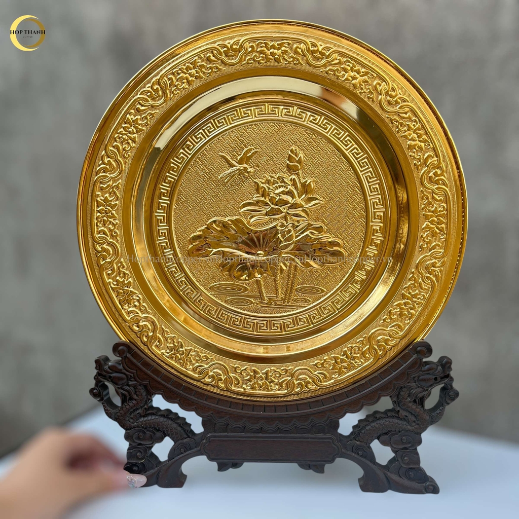 TRANH ĐĨA HOA SEN BẰNG ĐỒNG MẠ VÀNG 24K - TRANH QUÀ TẶNG ĐỂ BÀN (KÍCH THƯỚC 35CM)