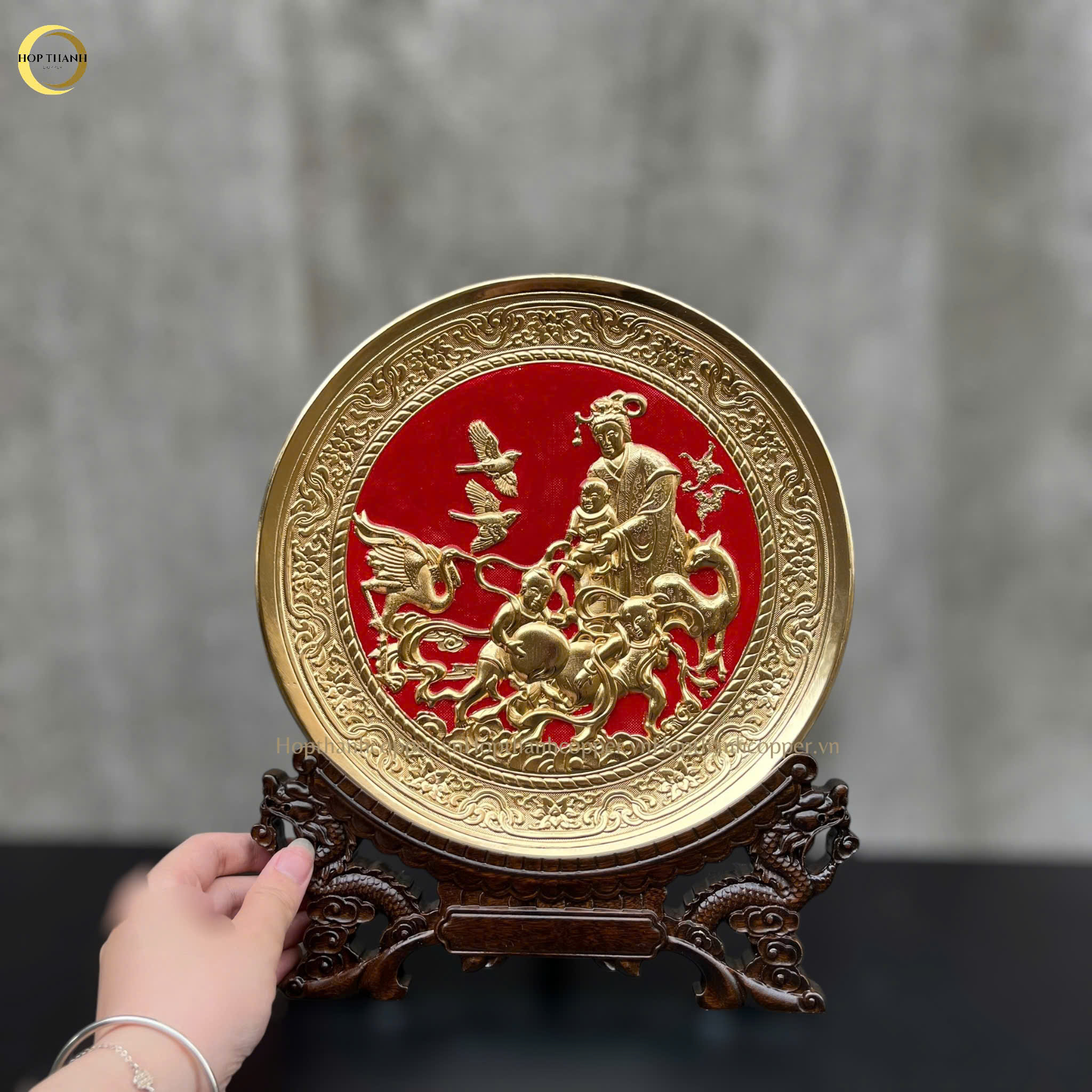 Tranh đĩa đồng mạ vàng chúc thọ Cụ Bà là một tác phẩm nghệ thuật tinh xảo, được chế tác hoàn toàn thủ công bởi những nghệ nhân lành nghề. Món quà này không chỉ có giá trị thẩm mỹ cao mà còn chứa đựng thông điệp sâu sắc về lòng hiếu kính, sự biết ơn của con cháu đối với bậc cao niên trong gia đình.