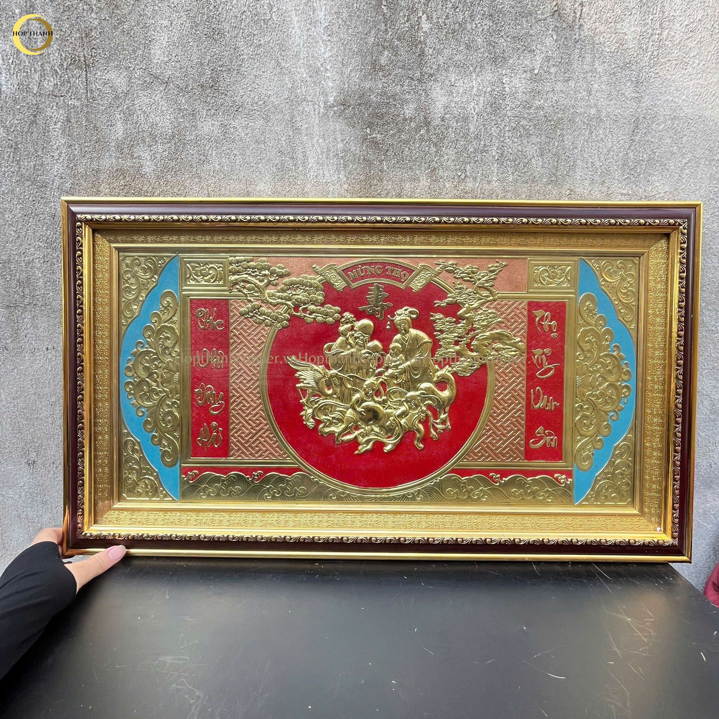 TRANH MỪNG THỌ ÔNG BÀ BẰNG ĐỒNG VÀNG - KÍCH THƯỚC 68X38CM