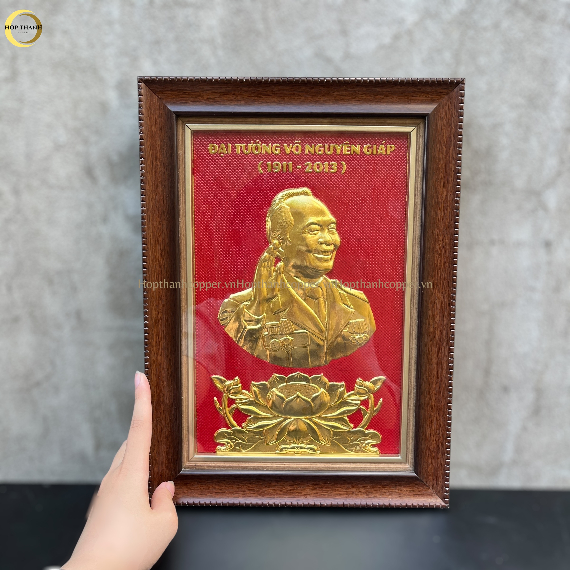 TRANH CHÂN DUNG ĐẠI TƯỚNG VÕ NGUYÊN GIÁP BẰNG ĐỒNG DÁT VÀNG - KÍCH THƯỚC 26X36CM