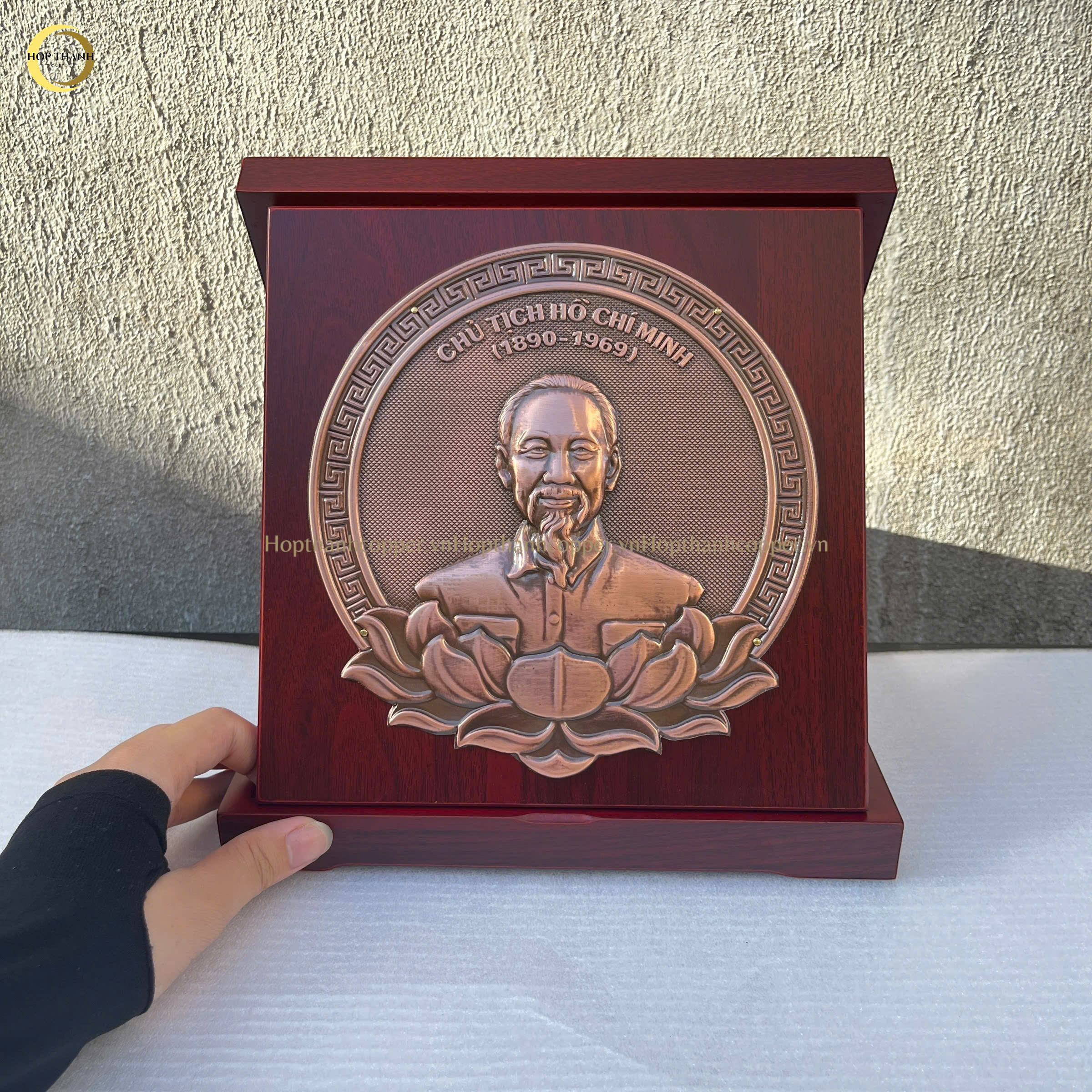 TRANH ĐỒNG CHÂN DUNG CHỦ TỊCH HỒ CHÍ MINH BẰNG ĐỒNG GIẢ CỔ - KÍCH THƯỚC 24X24CM