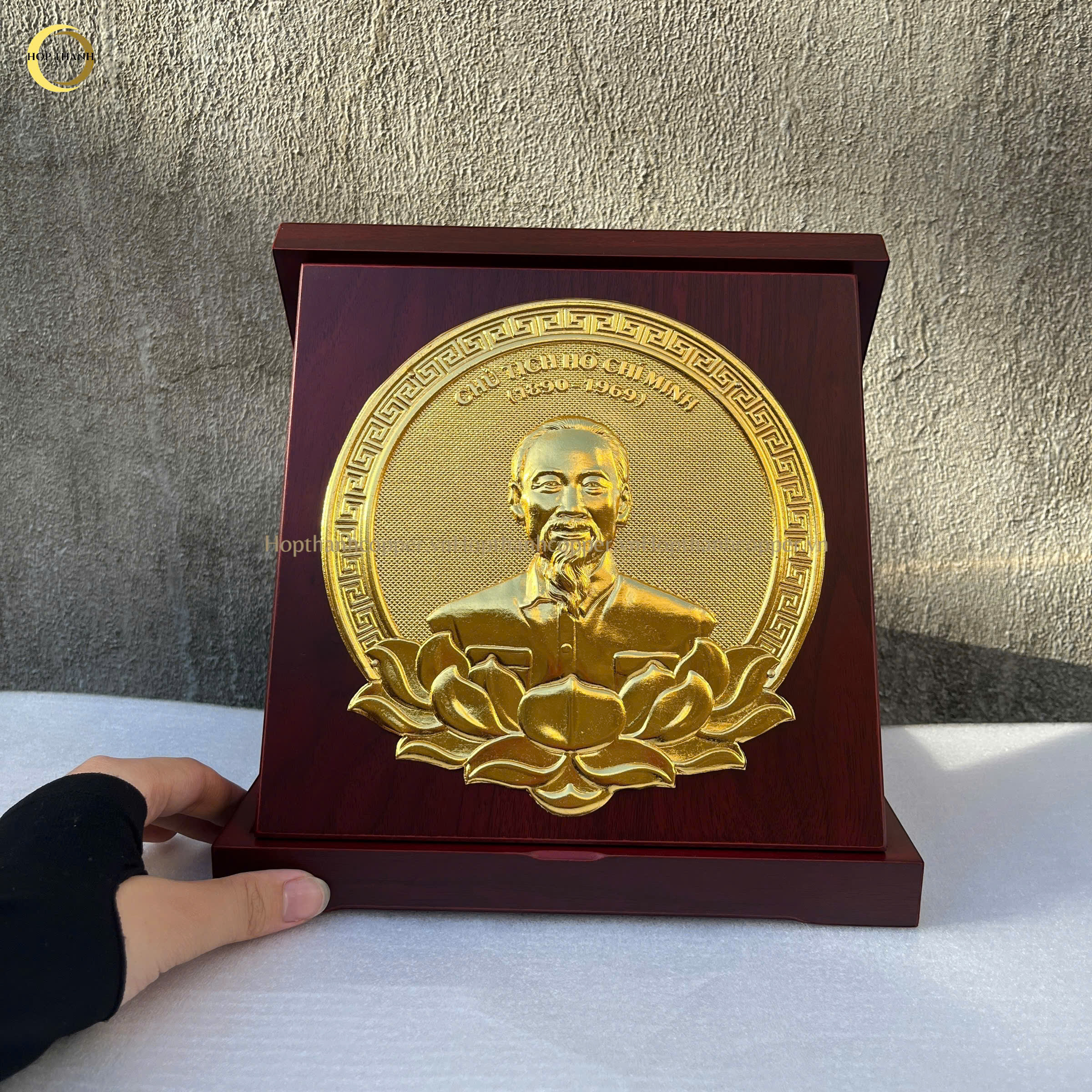 TRANH ĐỒNG CHÂN DUNG CHỦ TỊCH HỒ CHÍ MINH BẰNG ĐỒNG DÁT VÀNG - KÍCH THƯỚC 24X24CM