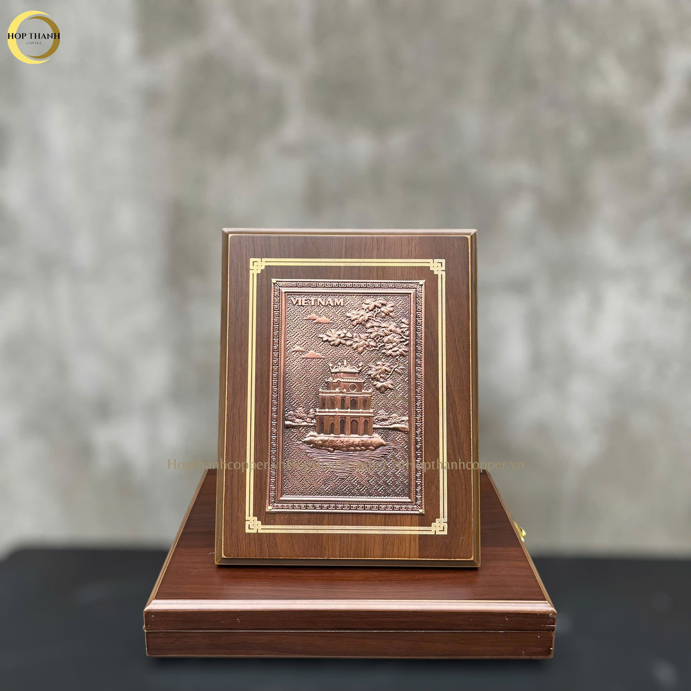 TRANH HỒ HOÀN KIẾM BẰNG ĐỒNG ĐỎ GIẢ CỔ - TRANH QUÀ TẶNG ĐỂ BÀN (KÍCH THƯỚC 17X22CM )