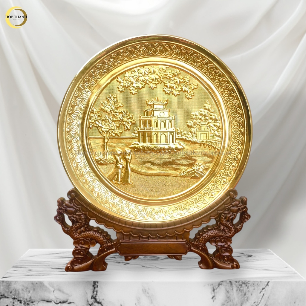 TRANH HỒ HOÀN KIẾM BẰNG ĐỒNG MẠ VÀNG 24K - ĐK 25CM