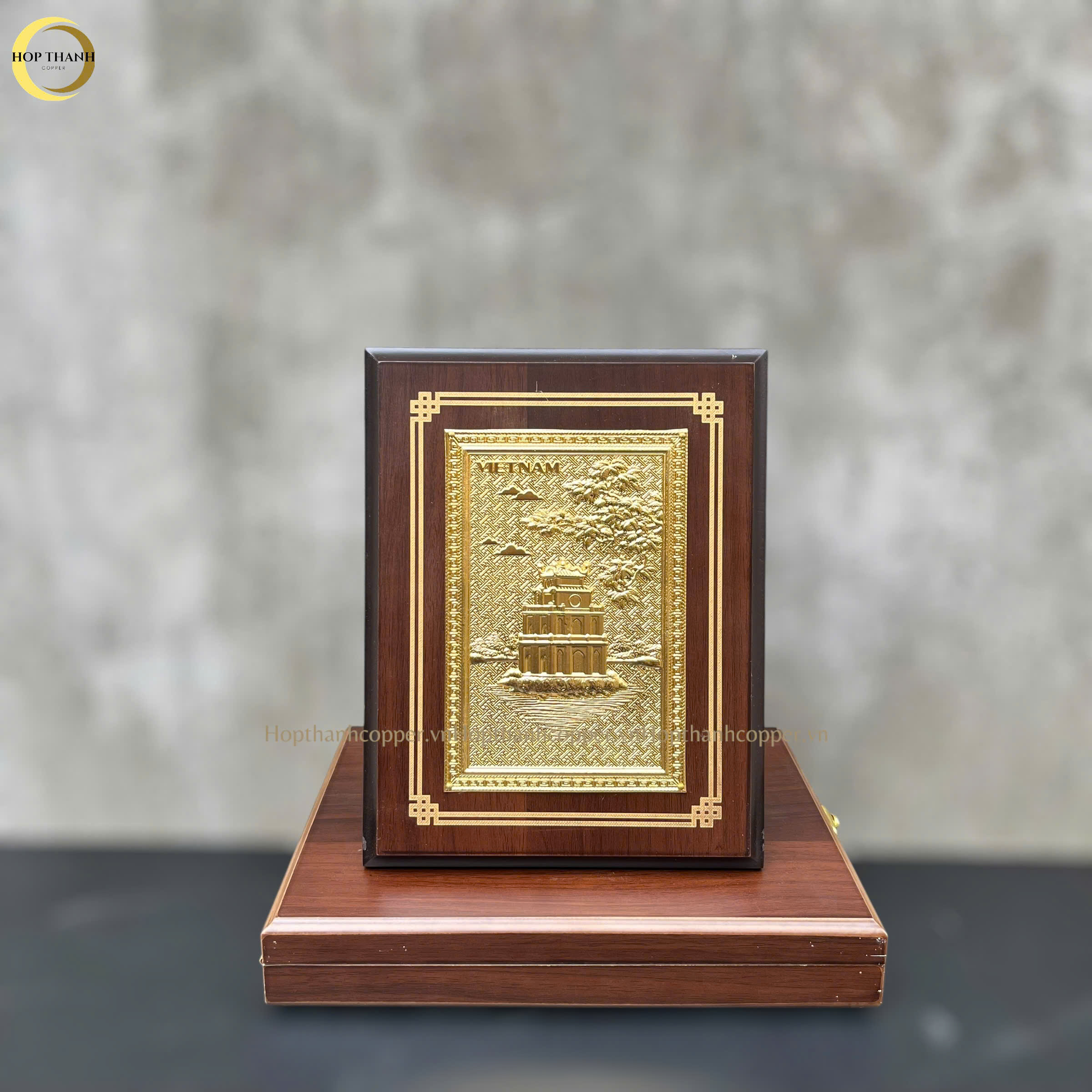 TRANH HỒ HOÀN KIẾM BẰNG ĐỒNG DÁT VÀNG - TRANH QUÀ TẶNG ĐỂ BÀN (KÍCH THƯỚC 17X22CM )