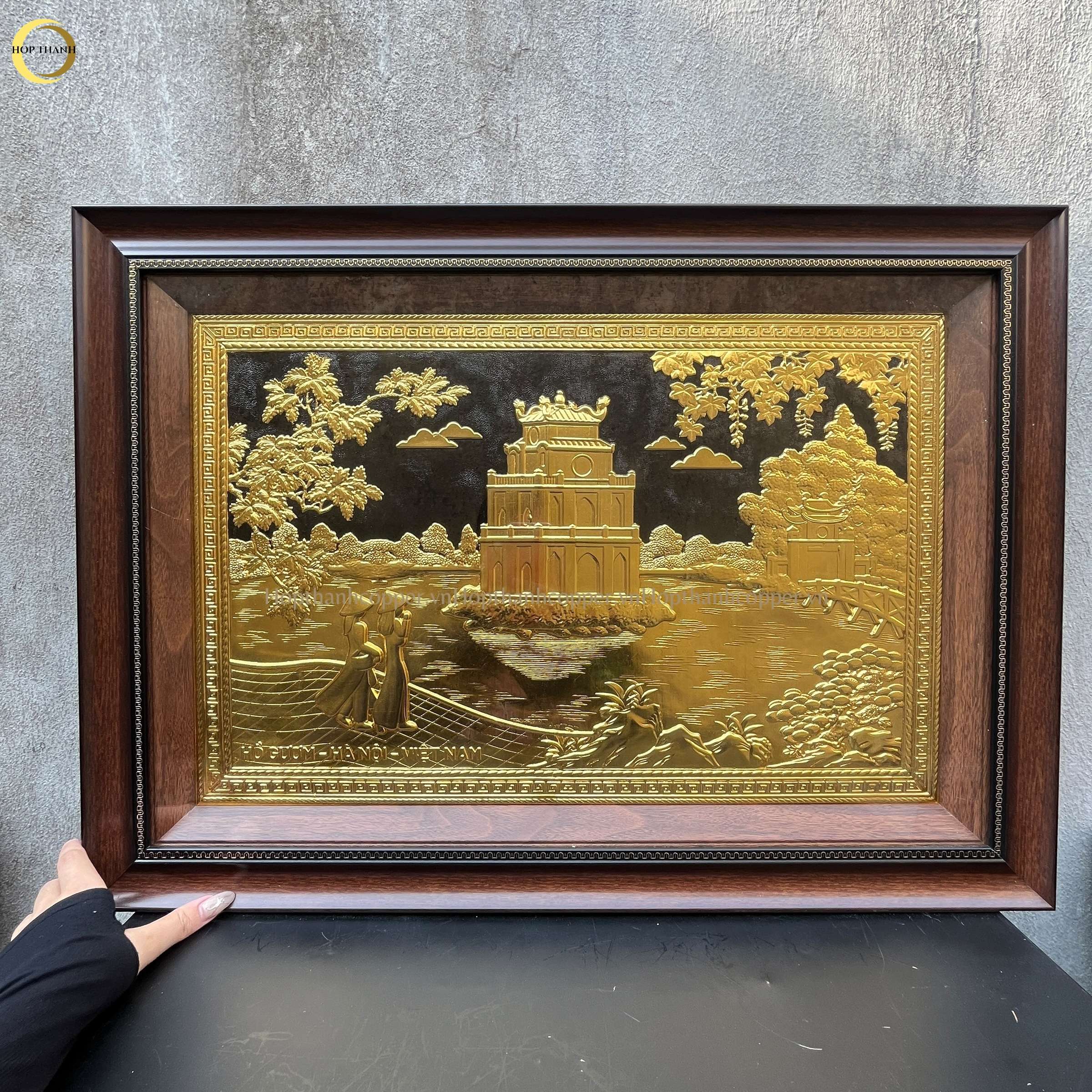 TRANH HỒ HOÀN KIẾM BẰNG ĐỒNG DÁT VÀNG - KÍCH THƯỚC 70X50CM