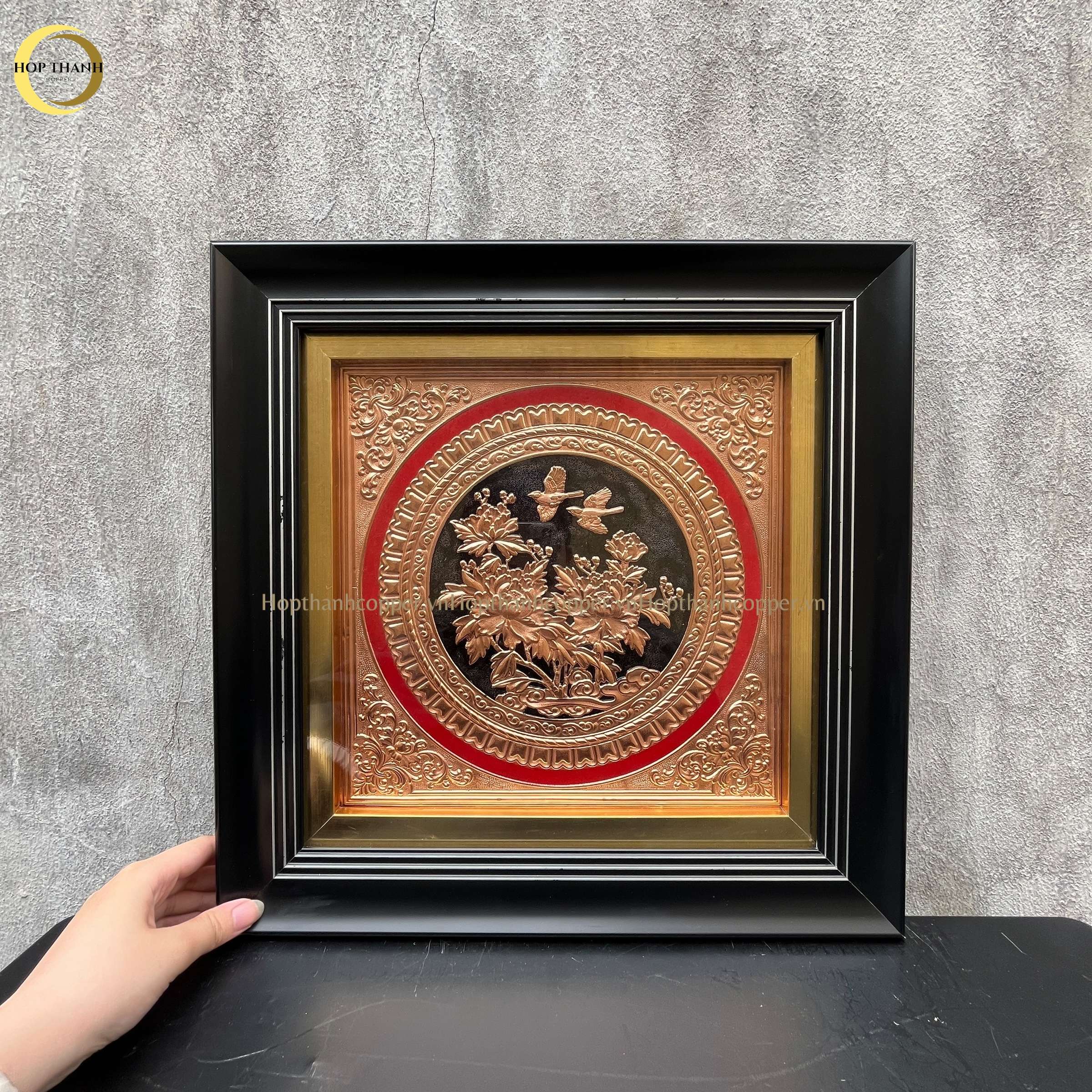 TRANH HOA CÁT TƯỜNG NHƯ Ý BẰNG ĐỒNG VÀNG GIẢ CỔ - KÍCH THƯỚC 40X40CM