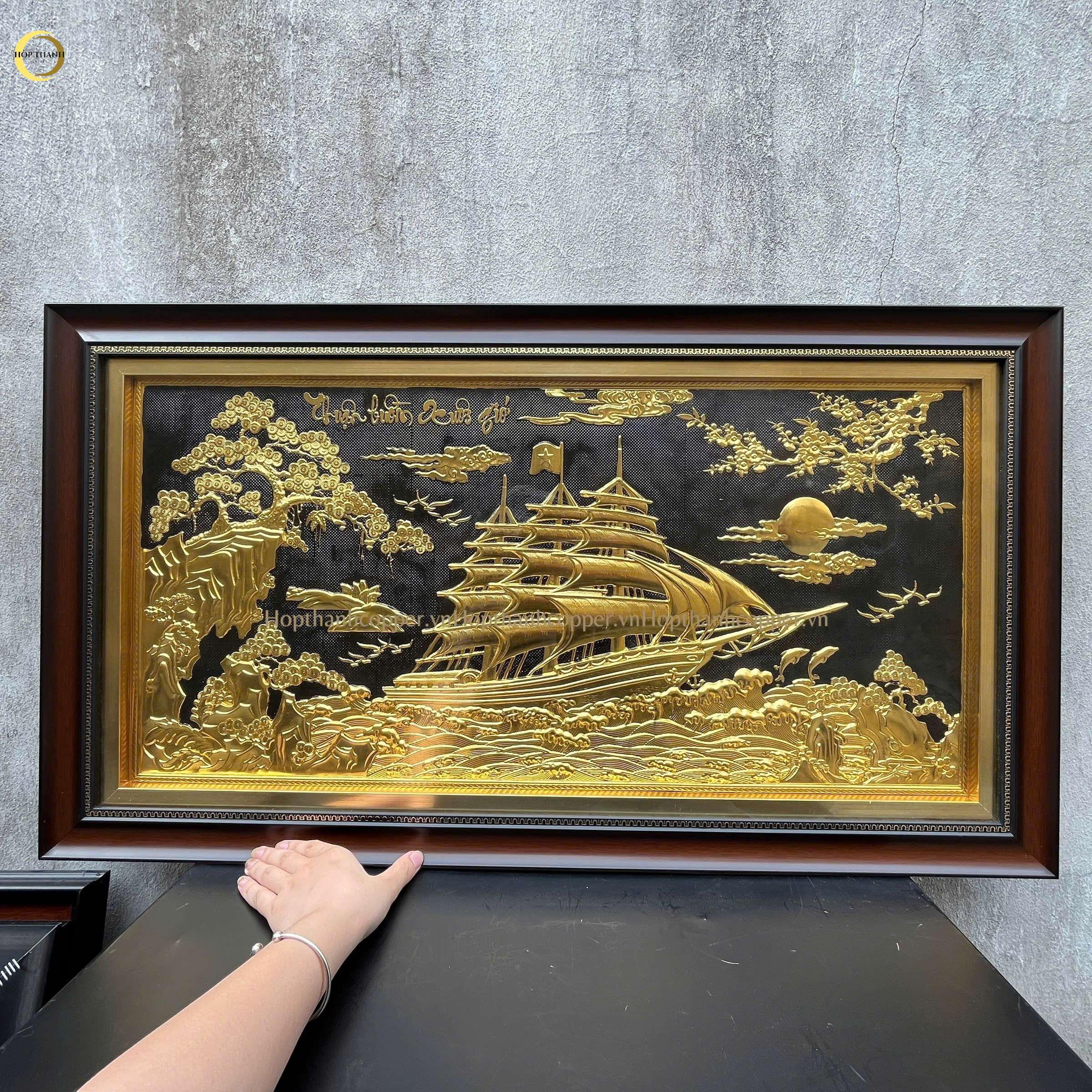 TRANH THUẬN BUỒM XUÔI GIÓ BẰNG ĐỒNG DÁT VÀNG - KÍCH THƯỚC 90X50CM