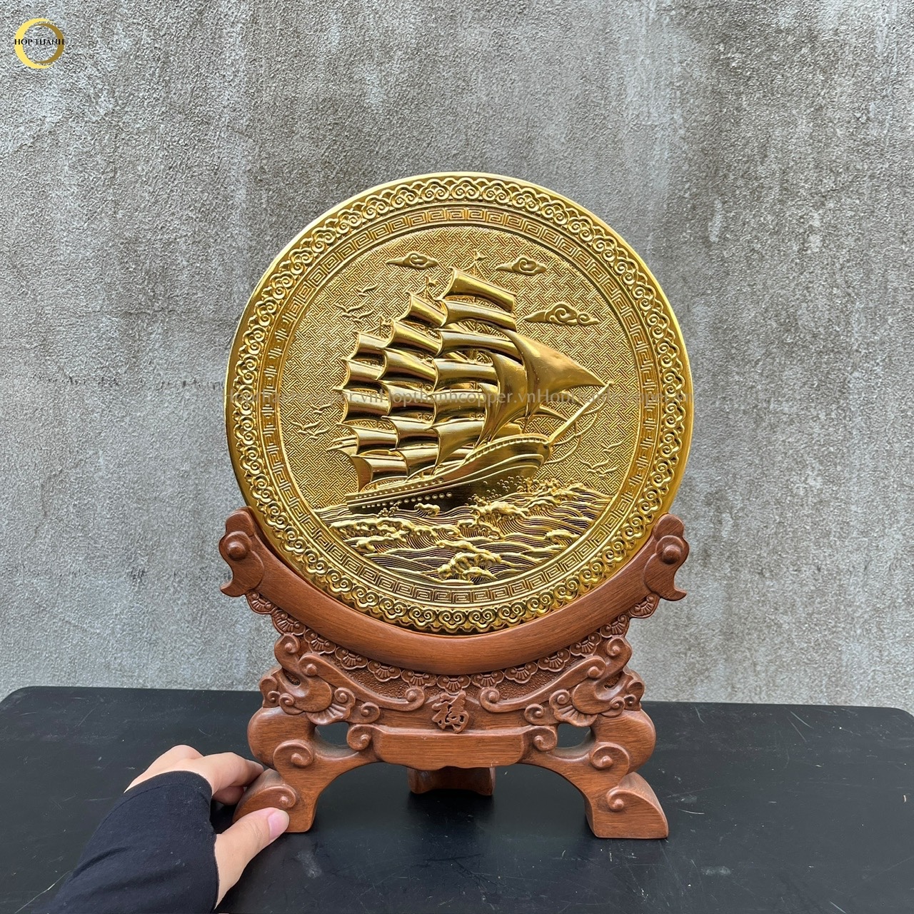TRANH ĐĨA THUẬN BUỒM XUÔI GIÓ BẰNG ĐỒNG MẠ VÀNG 24K- ĐƯỜNG KÍNH 26CM