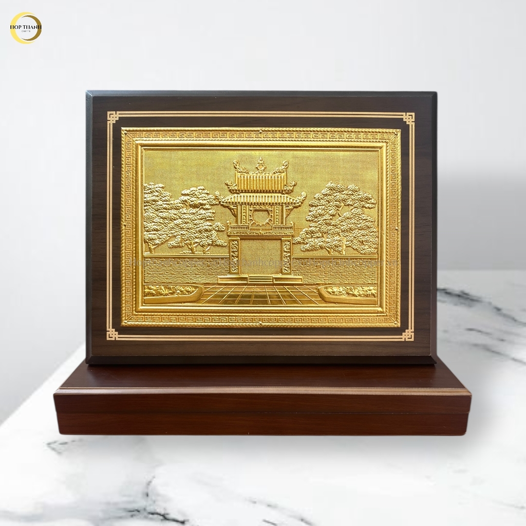 TRANH KHUÊ VĂN CÁC BẰNG ĐỒNG DÁT VÀNG - TRANH QUÀ TẶNG ĐỂ BÀN (KÍCH THƯỚC 26X34CM )