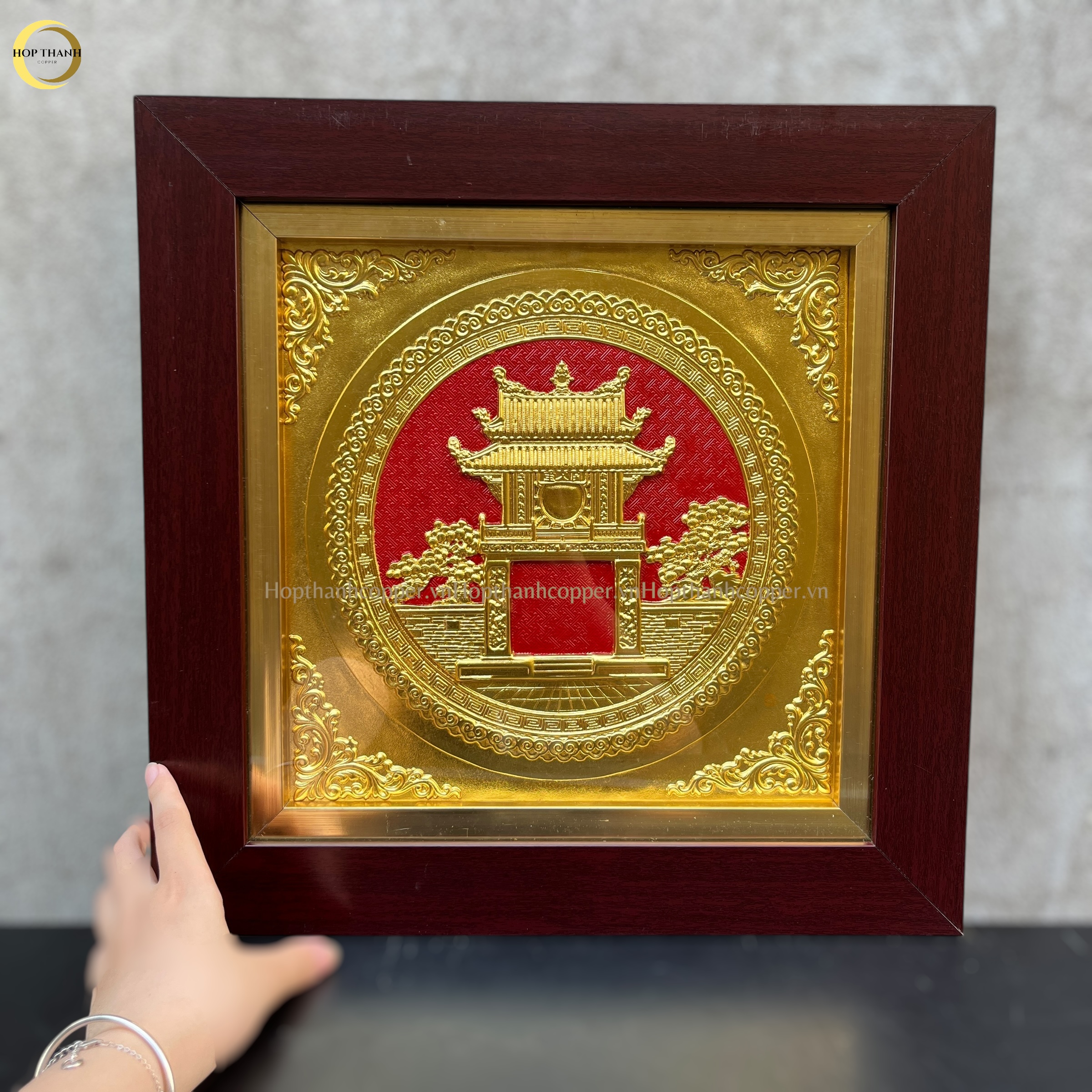 TRANH KHUÊ VĂN CÁC BẰNG ĐỒNG DÁT VÀNG - KÍCH THƯỚC 40X40CM