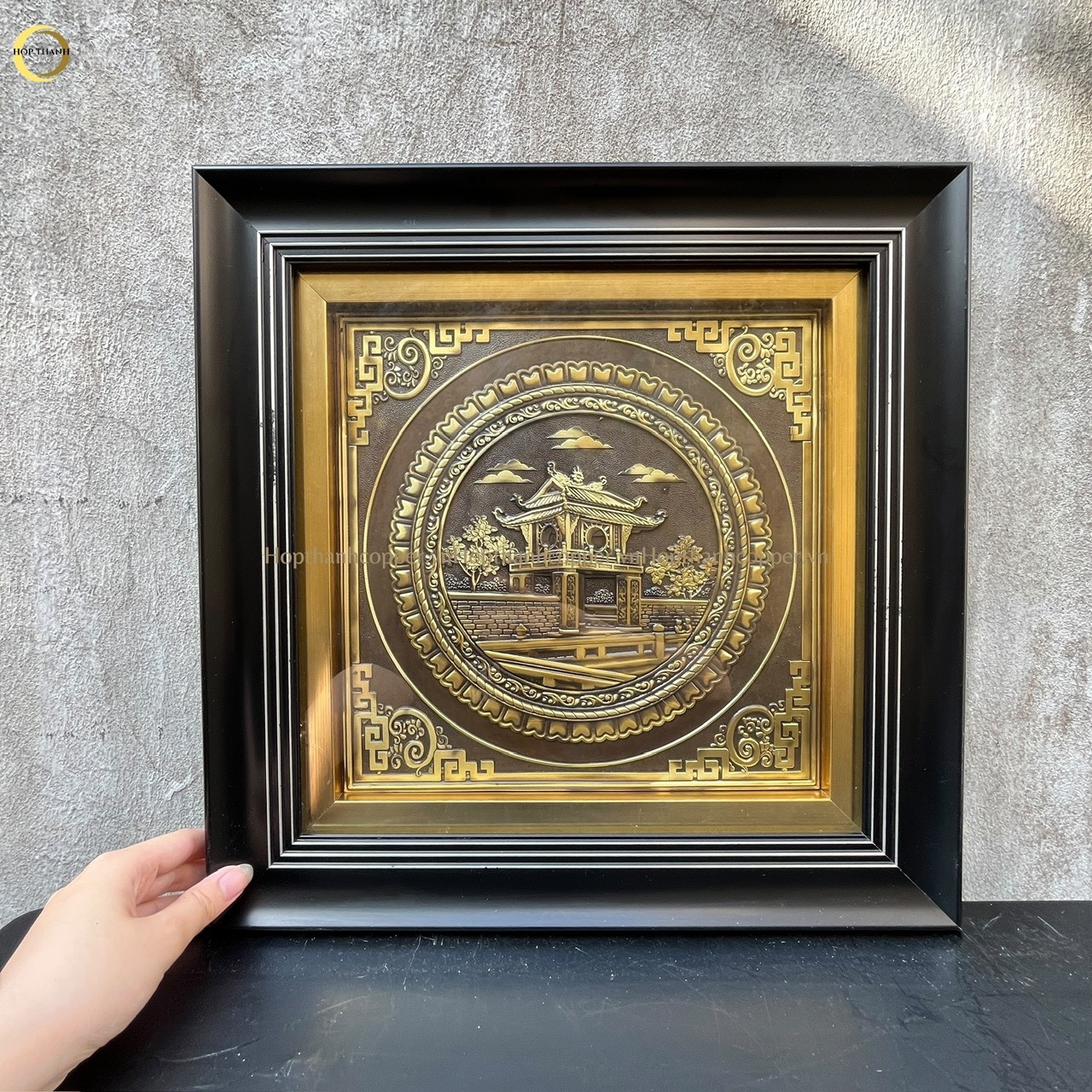 TRANH KHUÊ VĂN CÁC BẰNG ĐỒNG VÀNG GIẢ CỔ - KÍCH THƯỚC 40X40CM