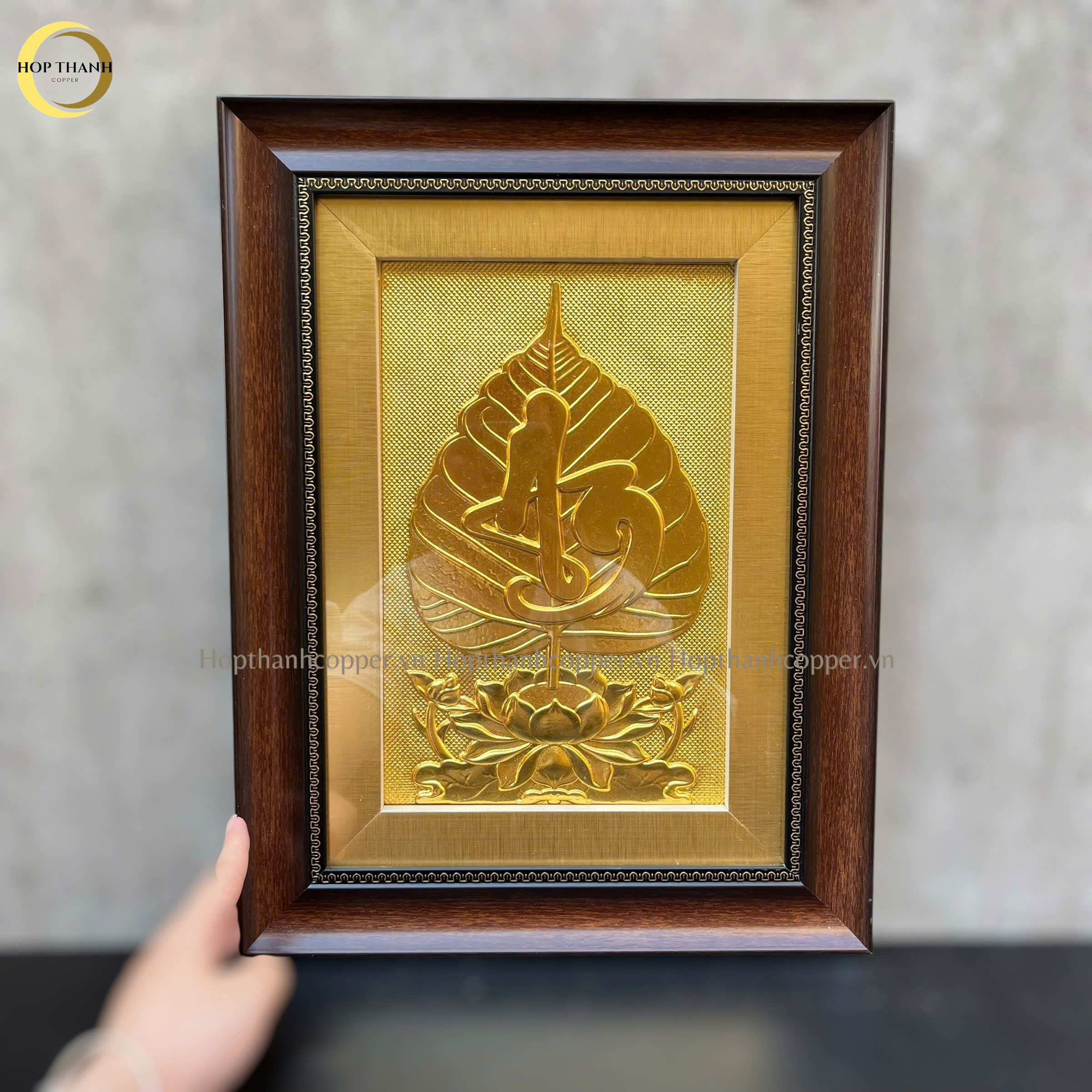 TRANH LÁ BỒ ĐỀ CHỮ AN BẰNG ĐỒNG DÁT VÀNG - KÍCH THƯỚC 32X42CM