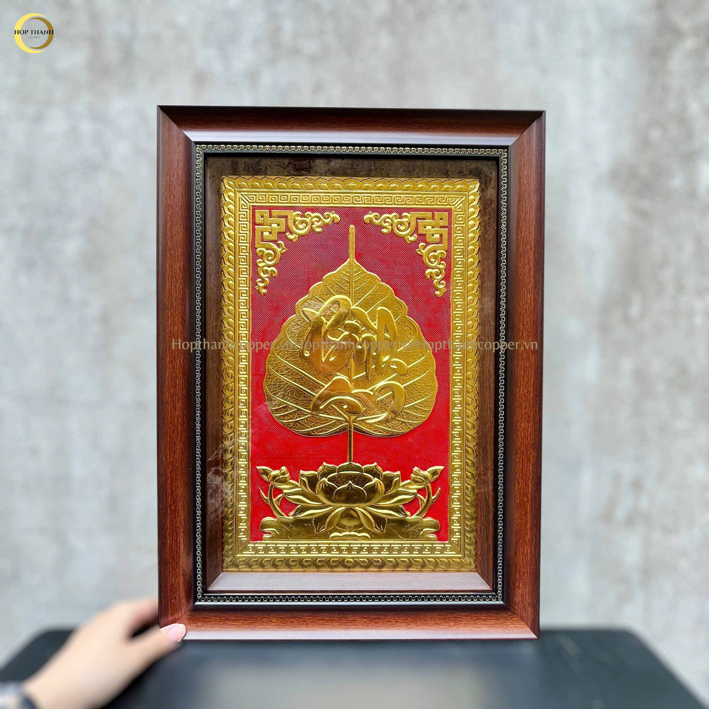 TRANH LÁ BỒ ĐỀ CHỮ BÌNH AN BẰNG ĐỒNG DÁT VÀNG - KÍCH THƯỚC 38X54CM