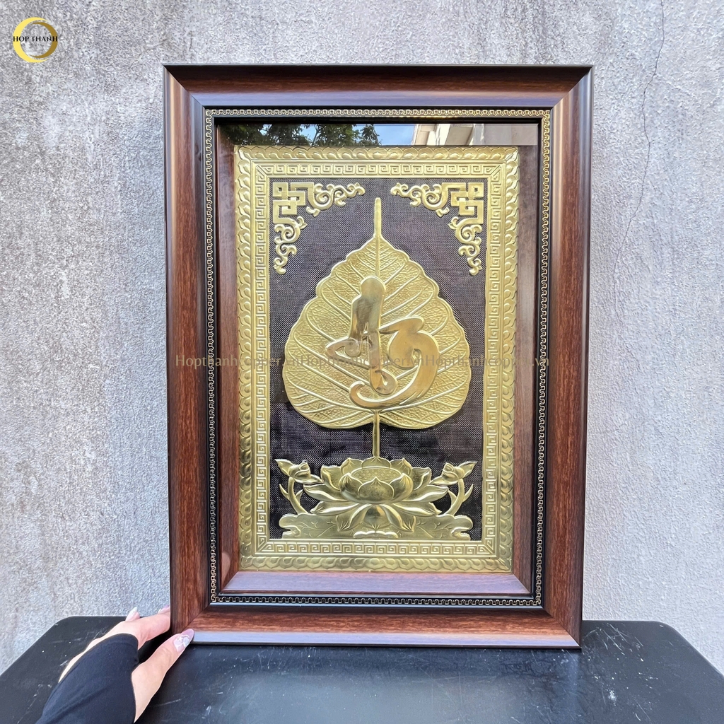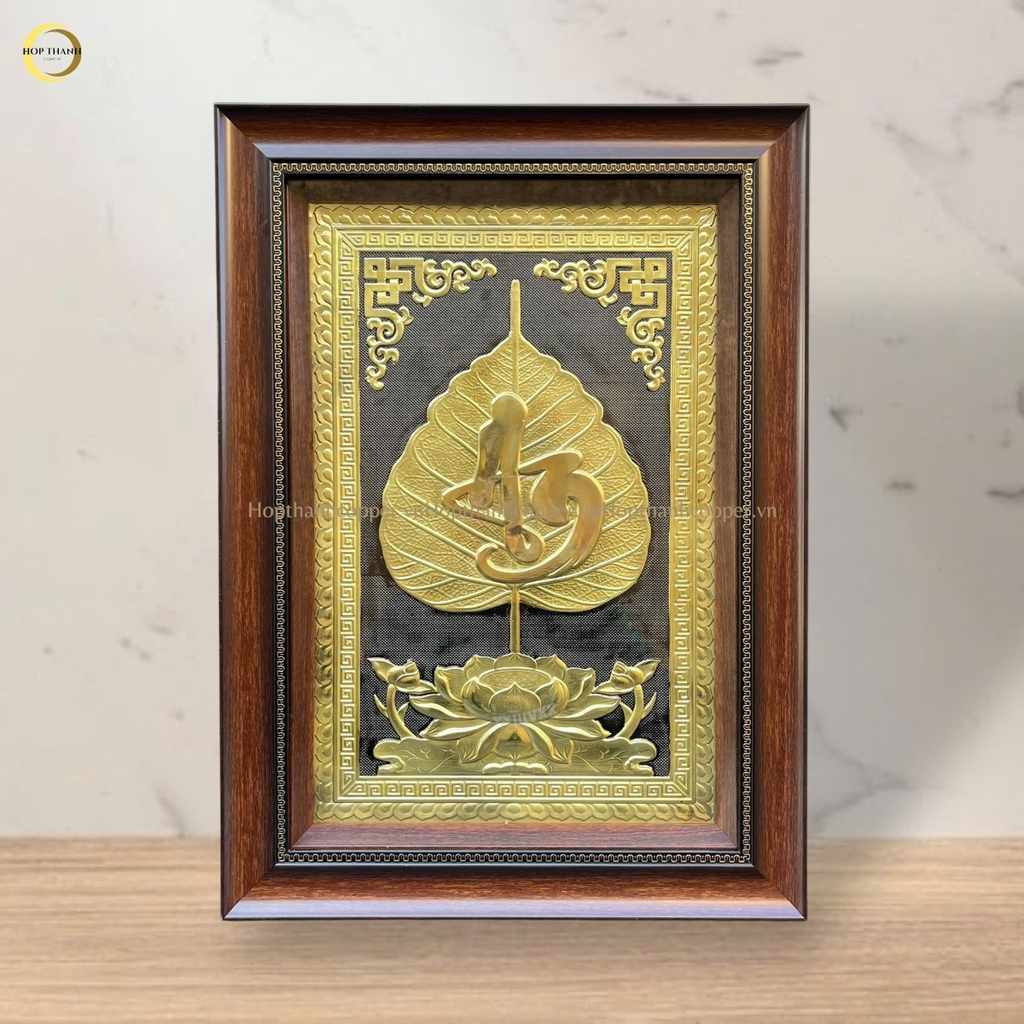 TRANH LÁ BỒ ĐỀ CHỮ BÌNH AN BẰNG ĐỒNG VÀNG - KÍCH THƯỚC 38X54CM