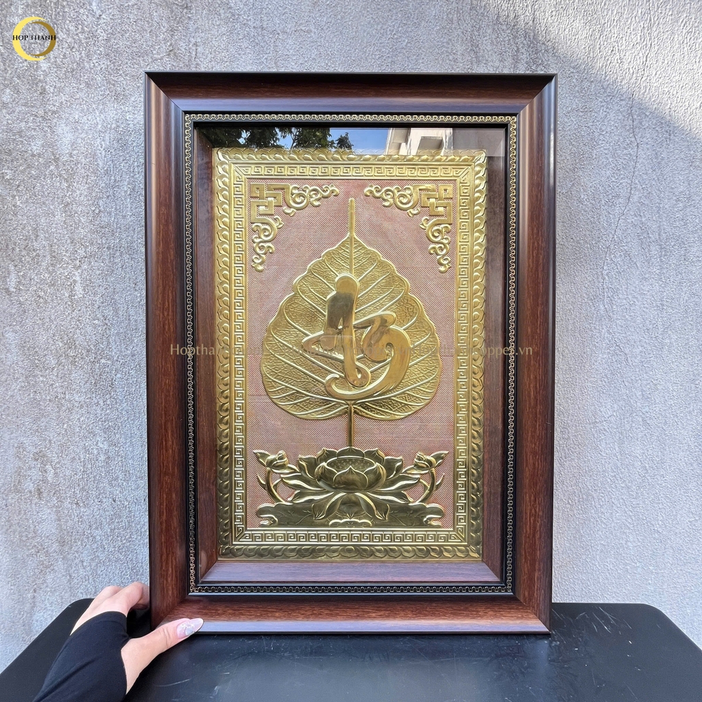 TRANH LÁ BỒ ĐỀ CHỮ BÌNH AN BẰNG ĐỒNG VÀNG - KÍCH THƯỚC 38X54CM