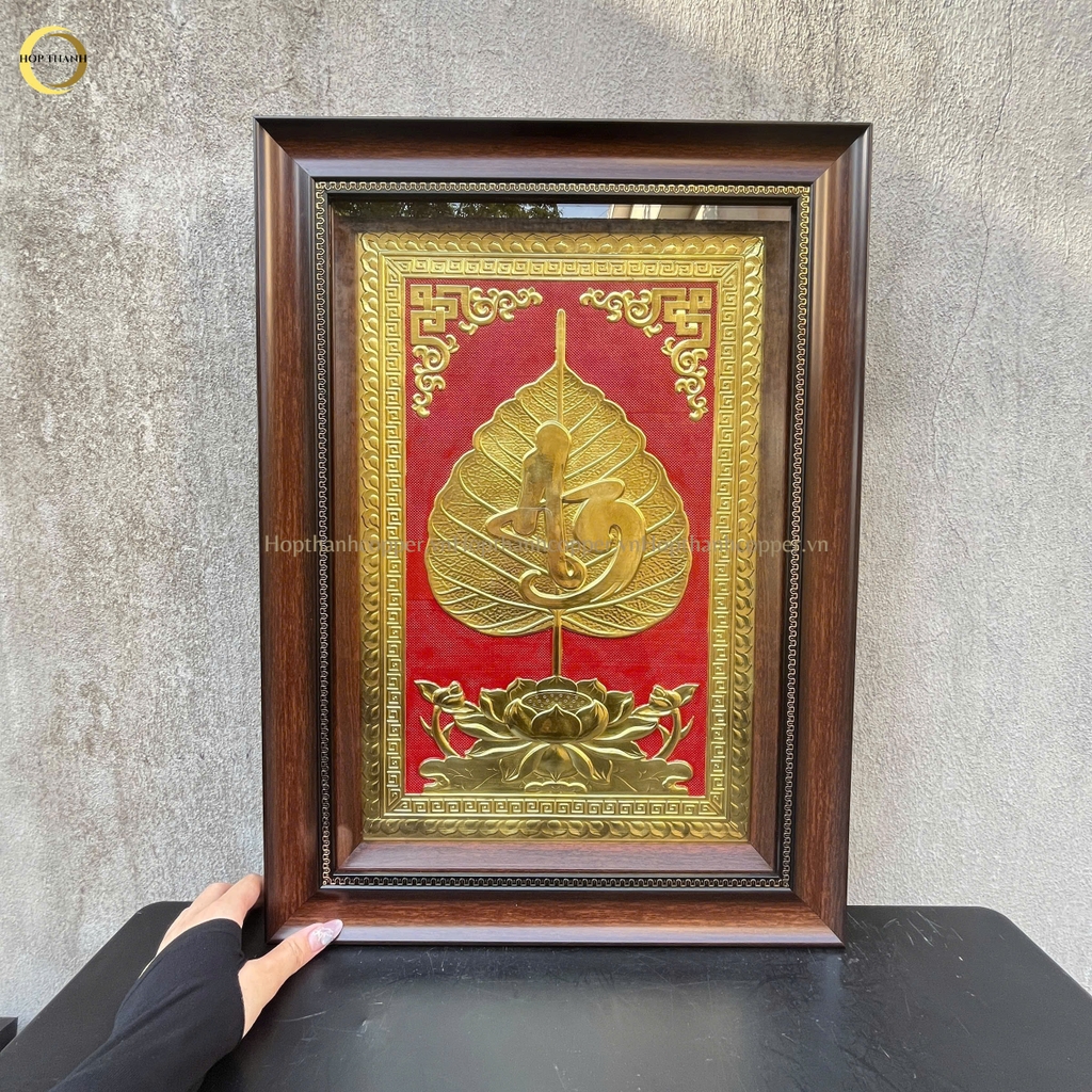 TRANH LÁ BỒ ĐỀ CHỮ AN BẰNG ĐỒNG DÁT VÀNG - KÍCH THƯỚC 38X54CM