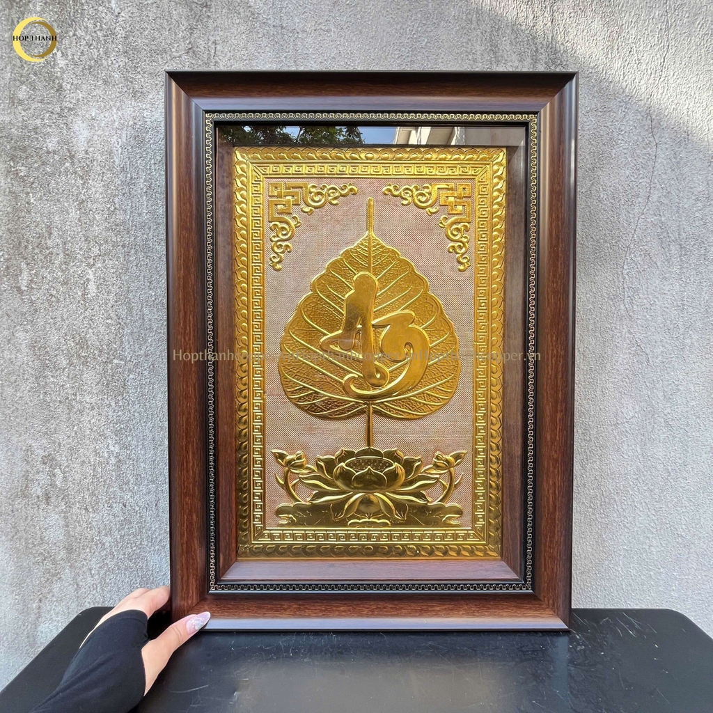 TRANH LÁ BỒ ĐỀ CHỮ AN BẰNG ĐỒNG DÁT VÀNG - KÍCH THƯỚC 38X54CM