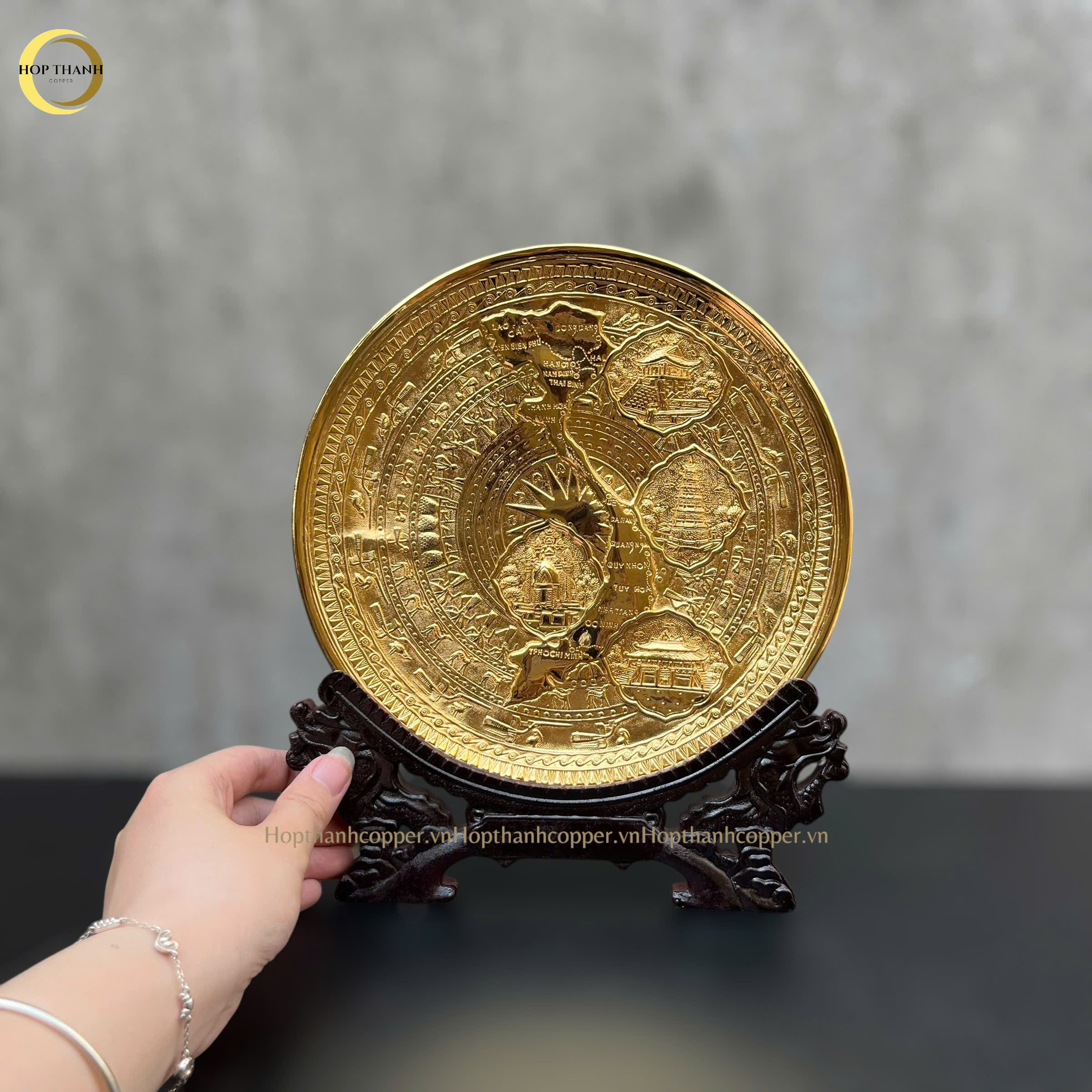 Tranh mặt trống đồng để bàn thường có kích thước vừa phải, phù hợp với không gian phòng khách, phòng làm việc hoặc phòng thờ. Chúng thường được làm từ các chất liệu cao cấp như đồng, gỗ, hoặc kim loại, mang đến sự bền bỉ và sắc nét. Những chi tiết trang trí trong tranh như hình ảnh các chiến binh, động vật, hay các họa tiết hình học, đều mang đậm tính nghệ thuật và biểu tượng của sự hưng thịnh, sức mạnh.