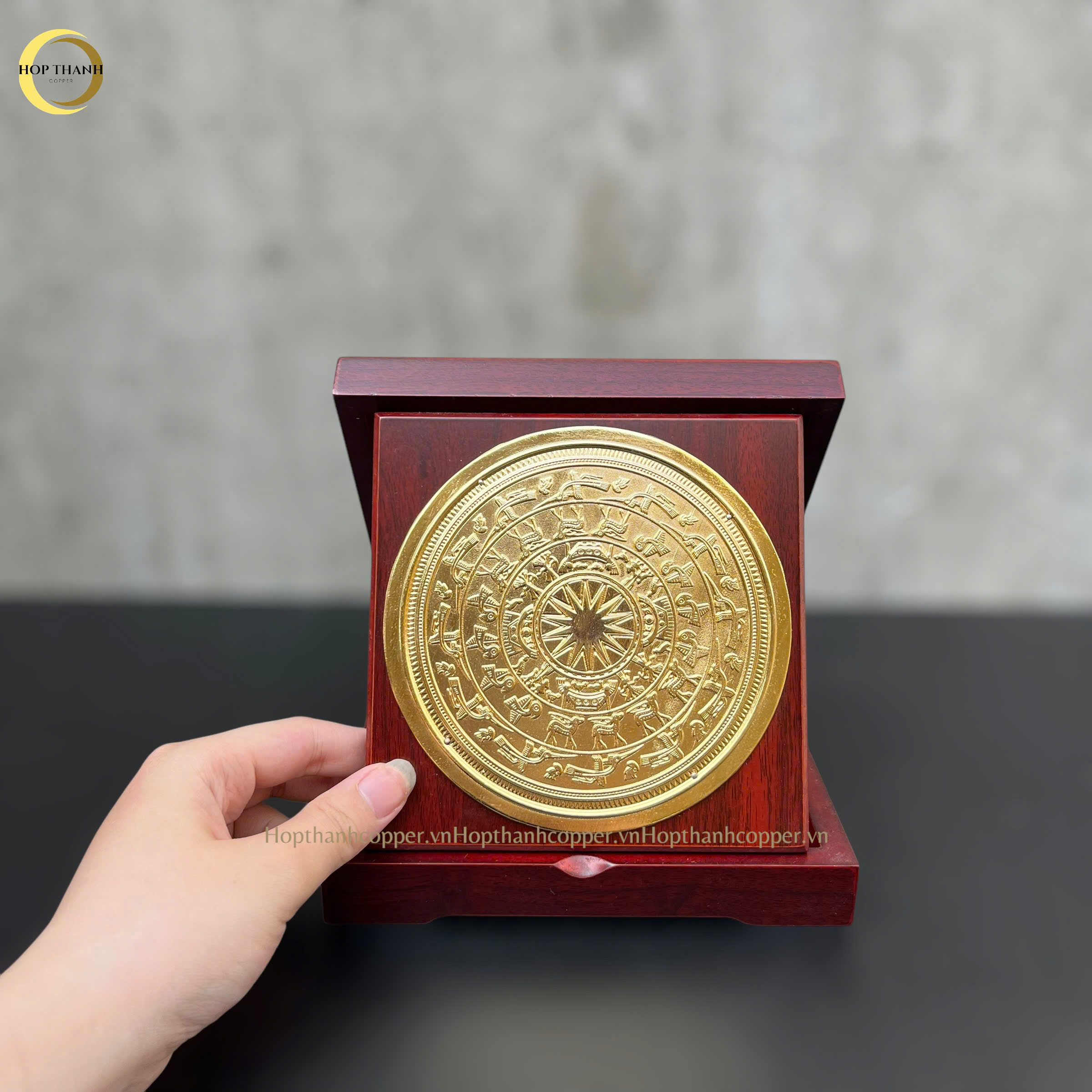 TRANH MẶT TRỐNG ĐỒNG BẰNG ĐỒNG DÁT VÀNG - QUÀ TẶNG ĐỂ BÀN (KÍCH THƯỚC 16X16CM)