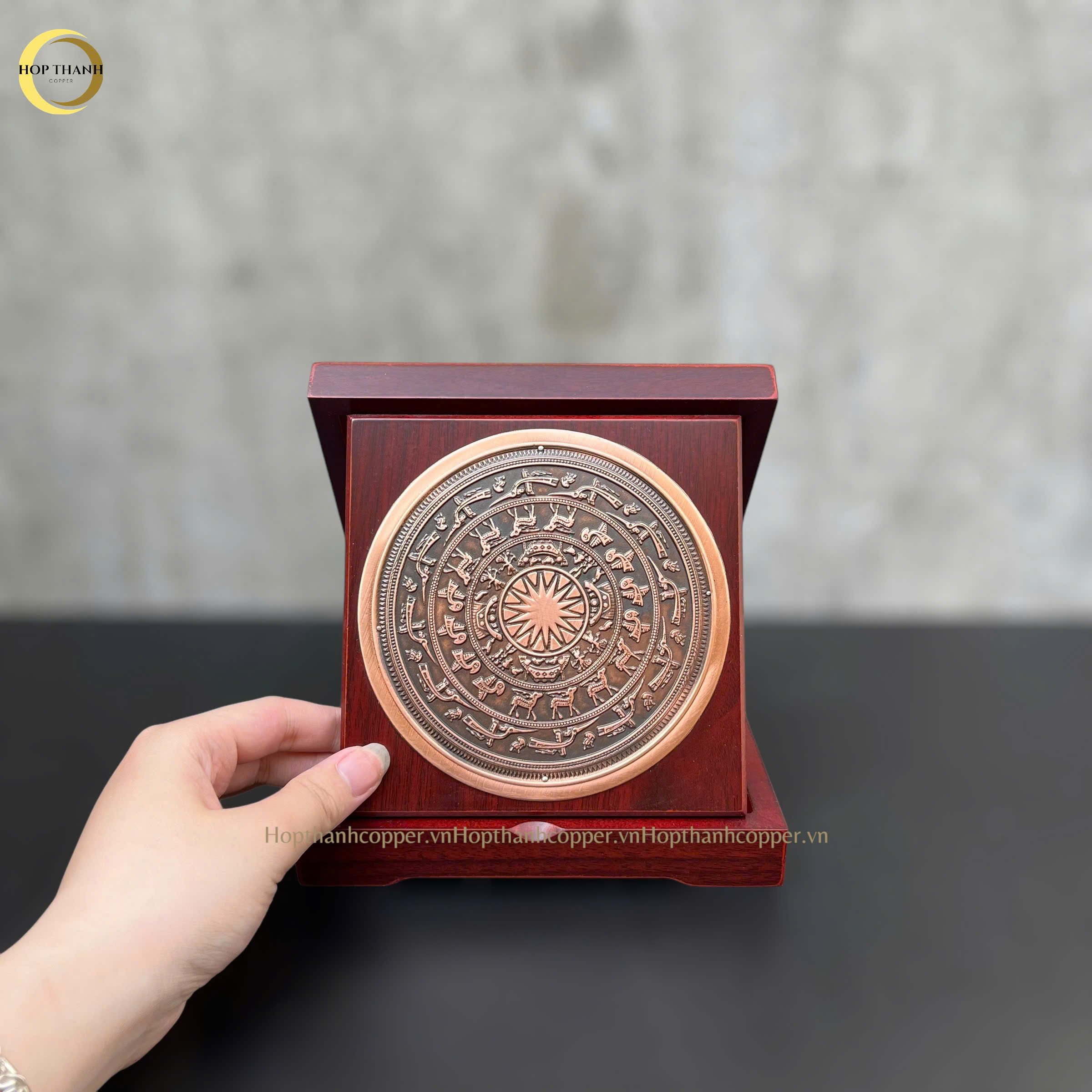 TRANH MẶT TRỐNG ĐỒNG BẰNG ĐỒNG ĐỎ GIẢ CỔ - QUÀ TẶNG ĐỂ BÀN (KÍCH THƯỚC 16X16CM)