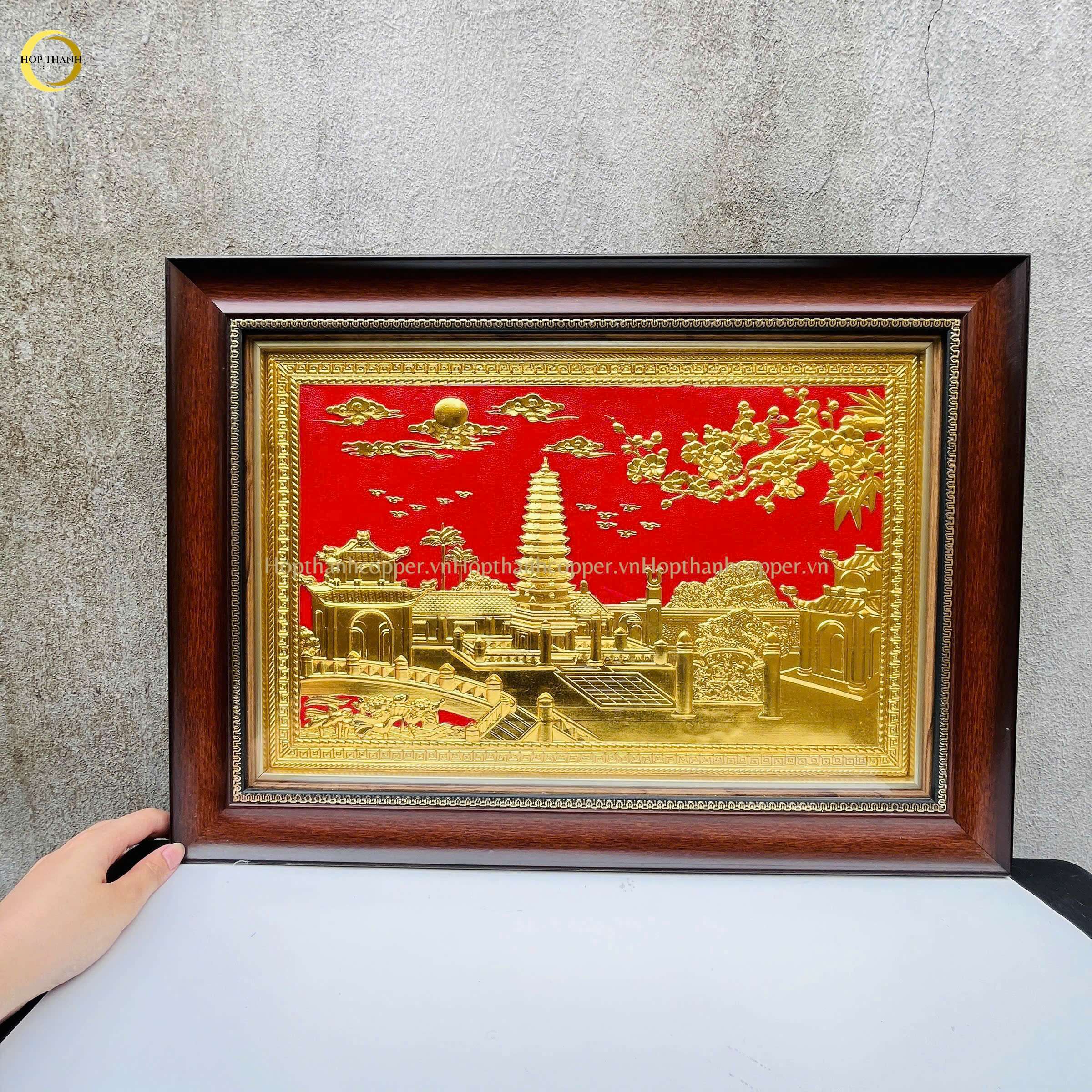 TRANH THÁP PHỔ MINH BẰNG ĐỒNG DÁT VÀNG - KÍCH THƯỚC 38X54CM